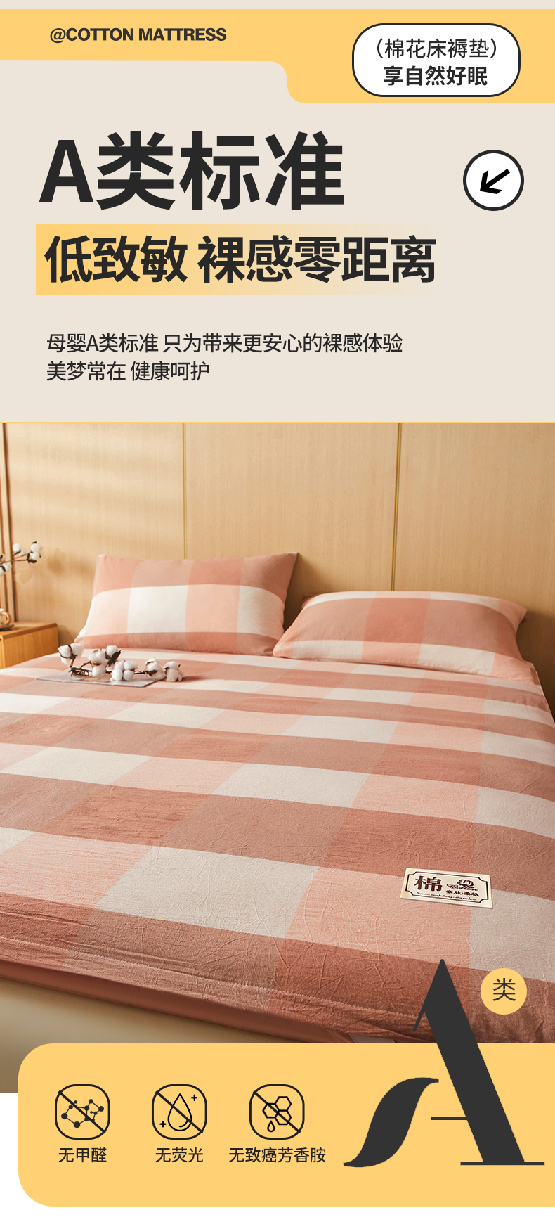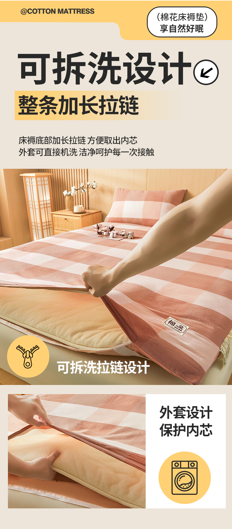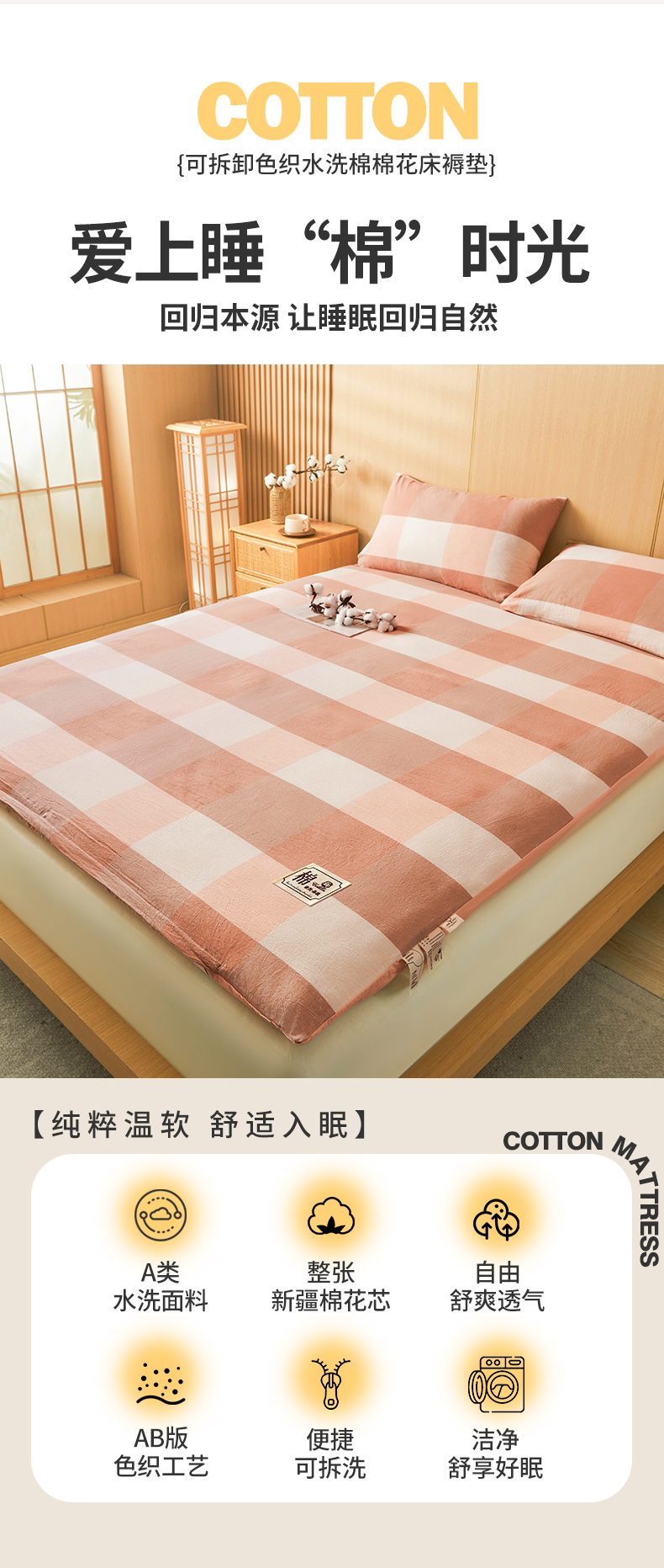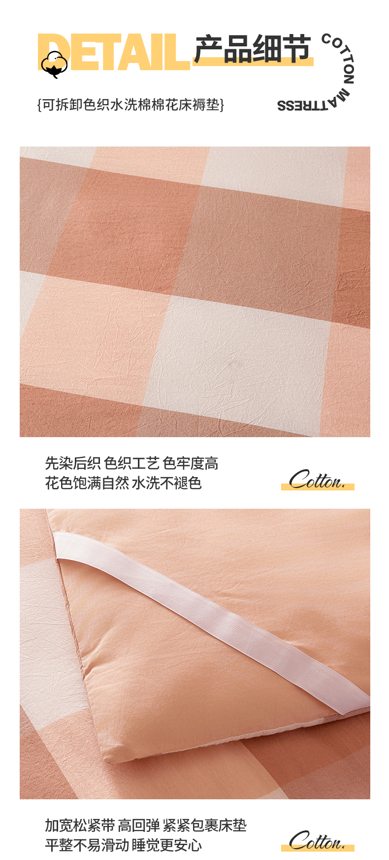 • 91家纺网 家纺一手货源 找家纺 晓时候 20252新款可拆洗新疆棉花床垫被褥子学生宿舍亲肤水洗棉棉花床垫-家用款 蜜粉大格