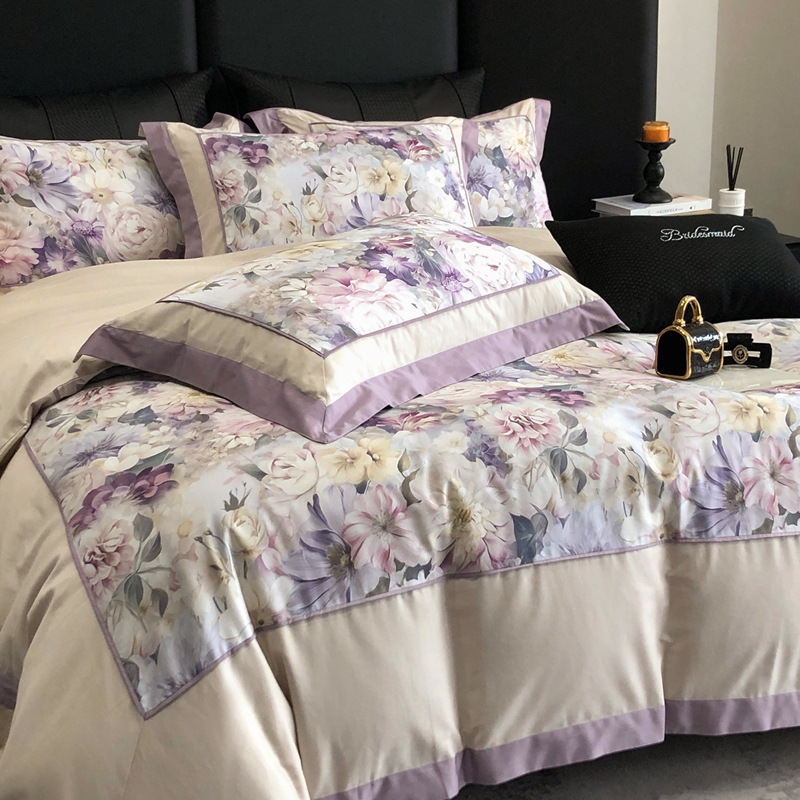 (总)佳汐蓝家纺 2025春夏新款贡缎长绒棉蝶梦花缘四件套,蝶梦花缘·粉,蝶梦花缘·紫