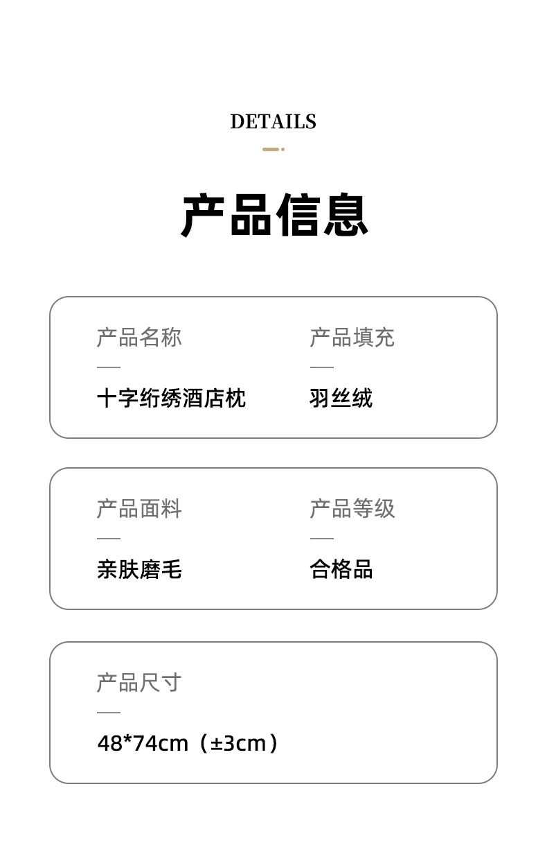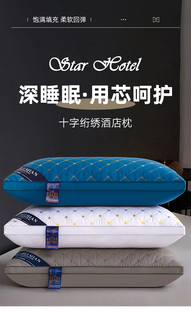 商品名称:(总)织布人 2025新款枕芯跨境爆款磨毛立体绗绣十字绣酒店枕头成人家用枕头枕芯