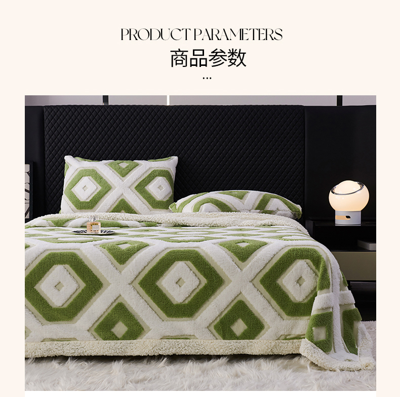 商品名称:枋梢家纺 2025新款几何空间阳离子提花镂空塔芙绒羊羔绒保暖午睡双层毛毯办公室盖毯 几何-翠绿
