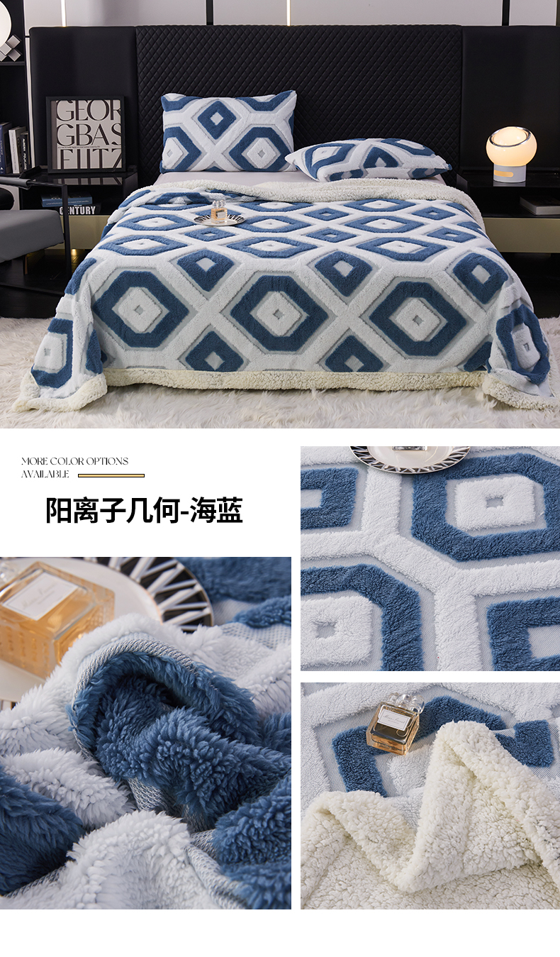 (总)枋梢家纺 2025新款几何空间阳离子提花镂空塔芙绒羊羔绒保暖午睡双层毛毯办公室盖毯,组合图仅做展示,几何-翠绿,几何-豆沙,几何-海蓝,几何-玫红,几何-浅灰,几何-浅咖,几何-深灰,几何-深咖,几何-雅青