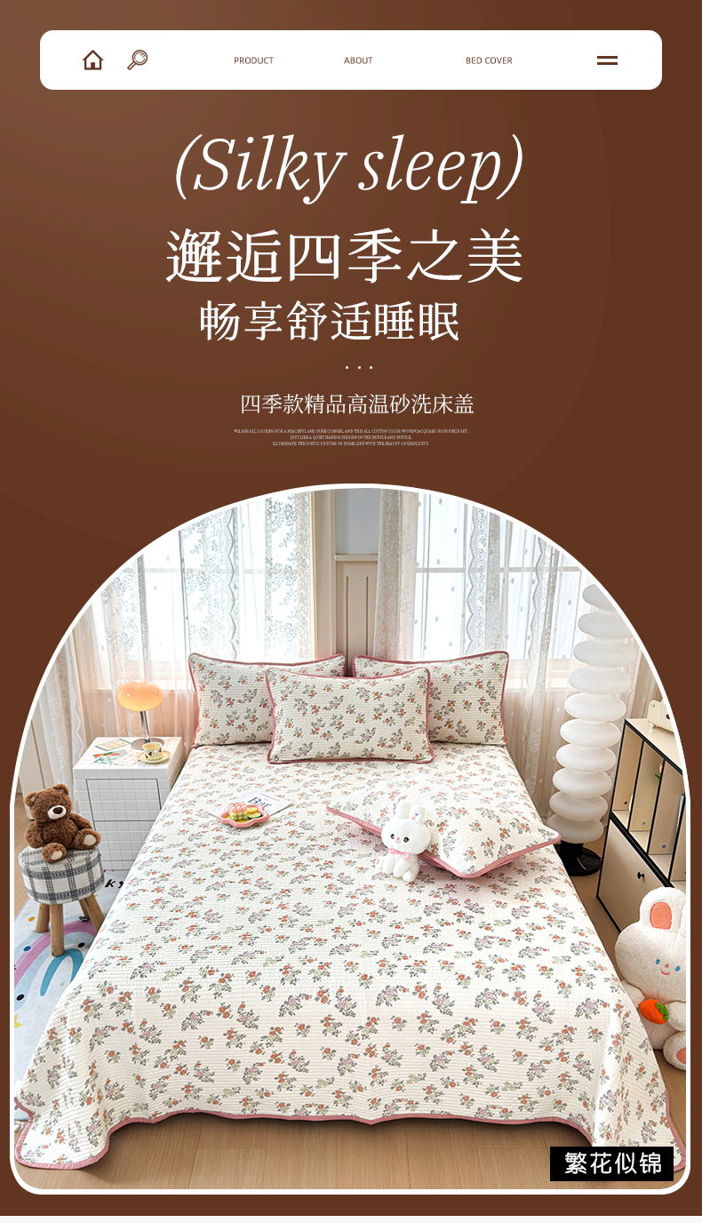 • 91家纺网 家纺一手货源 找家纺 (总)橙子家居 2025年新款小清新全棉高温砂洗棉花床盖四件套跑量款床盖单面纯棉,春风里-紫,琥珀流光,蓝心兔,玲娜,梦幻花园兔,舒芙蕾,甜甜夏日,芋泥啵啵