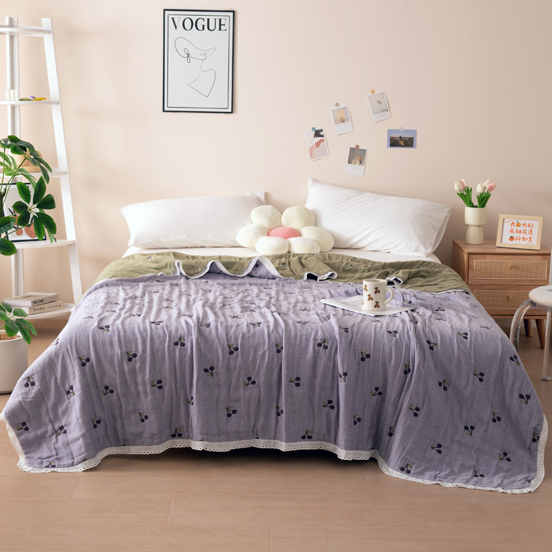 商品名称:橙子家居 2024新款韩国泡芙被纯棉五层纱布空调被夏凉被 春秋被 樱桃猫