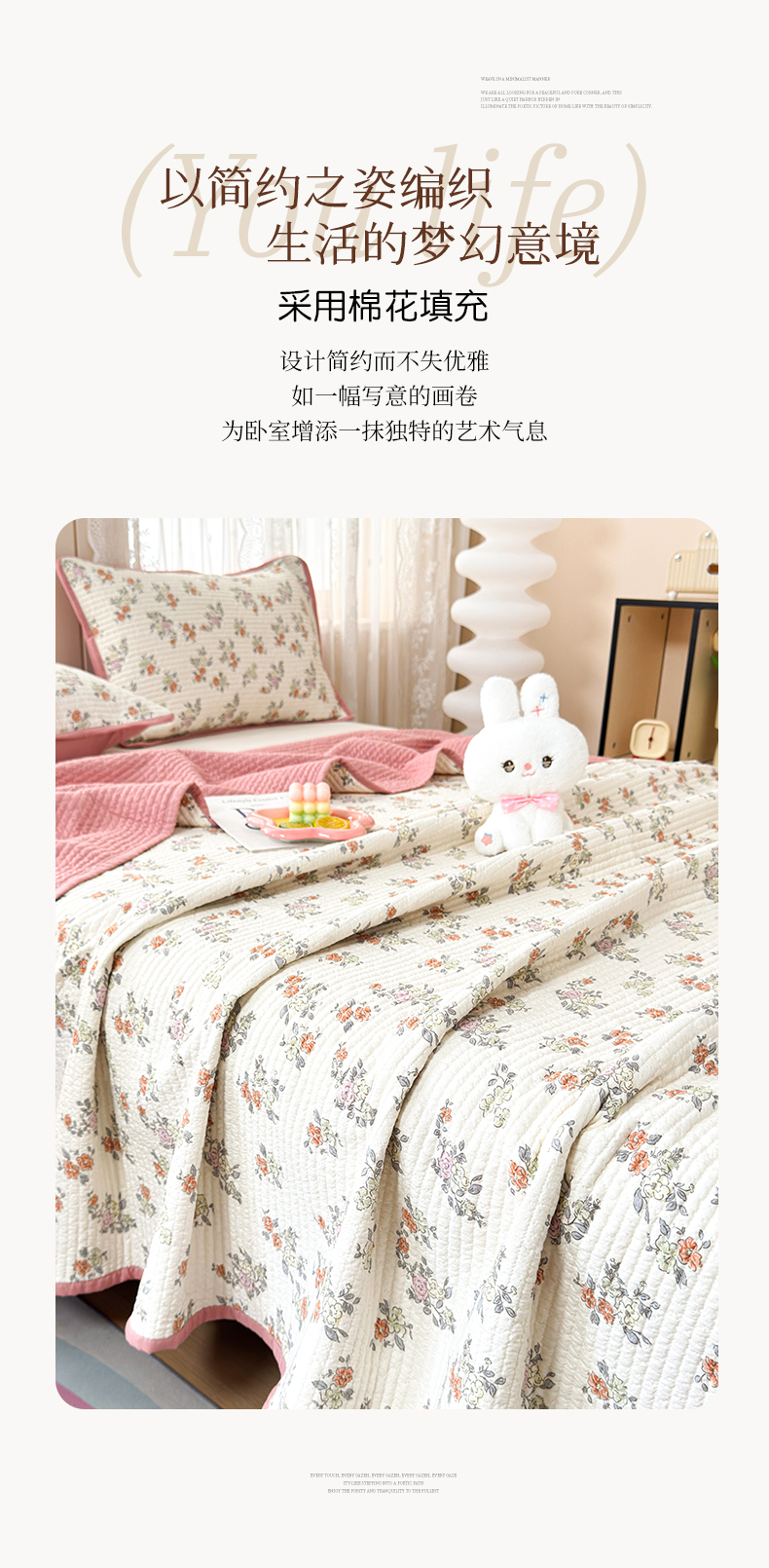 当前位置: 91家纺网 > 商品网购 > 床上用品 > 床盖 > 橙子家居 2024新款A类木棉印花床盖三件套四季款夹层新疆棉花 春天里