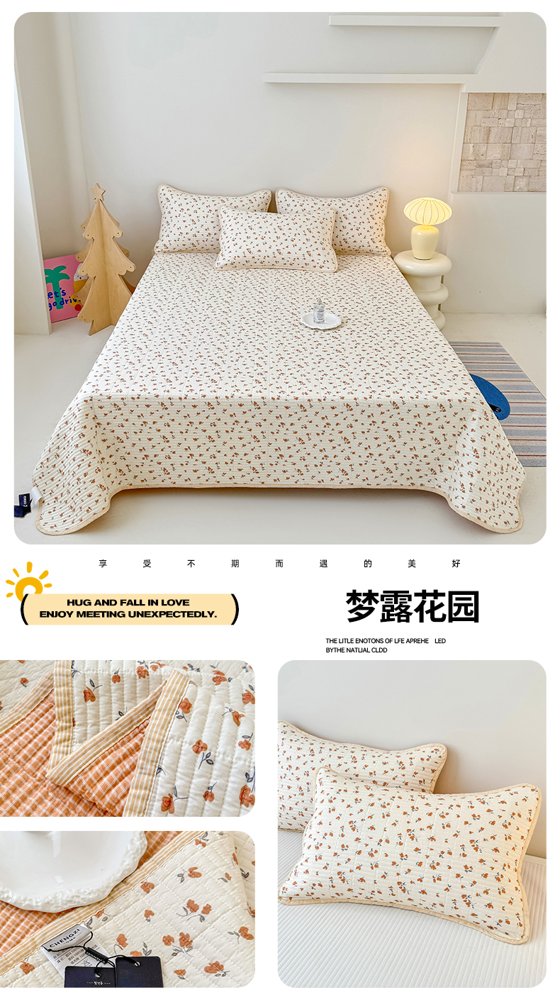橙子家居 2025新款双面全棉纯棉砂洗夹棉床盖三件套 薇恋时光