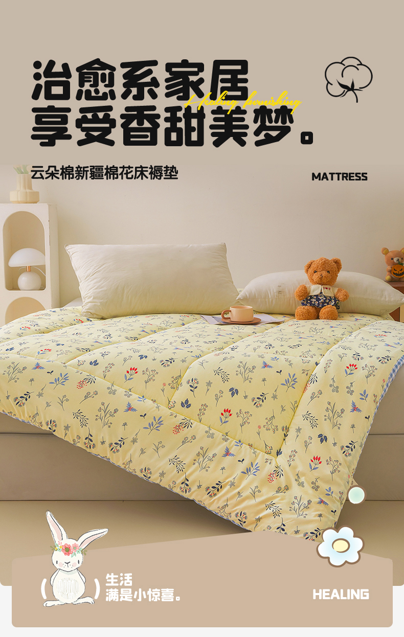 当前位置: 91家纺网 > 商品网购 > 床垫/床褥 > 普通床垫 > 梵蒂莎 2025秋冬新品云朵棉新疆棉花床垫垫背床褥垫单人床褥宿舍加厚褥子(2025新花型拍图中)春日来信-床垫系列