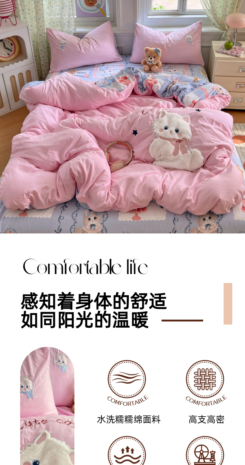 当前位置: 91家纺网 > 商品网购 > 床品套件 > 四件套 > 水洗棉四件套 > 优尚佳生活馆 2025新款水洗棉印花贴布绣四件套【提供买家秀】 安吉拉