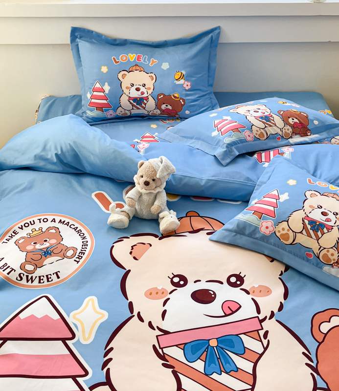 (总)宝薇 2026春夏新款7D卡通加厚斜纹仿棉生态磨毛大版四件套,大白兔,繁星,好运松鼠,欢乐时光,梨花开,玫瑰兔,萌萌熊,牵手熊,太空人,天使兔,甜心兔,月亮兔