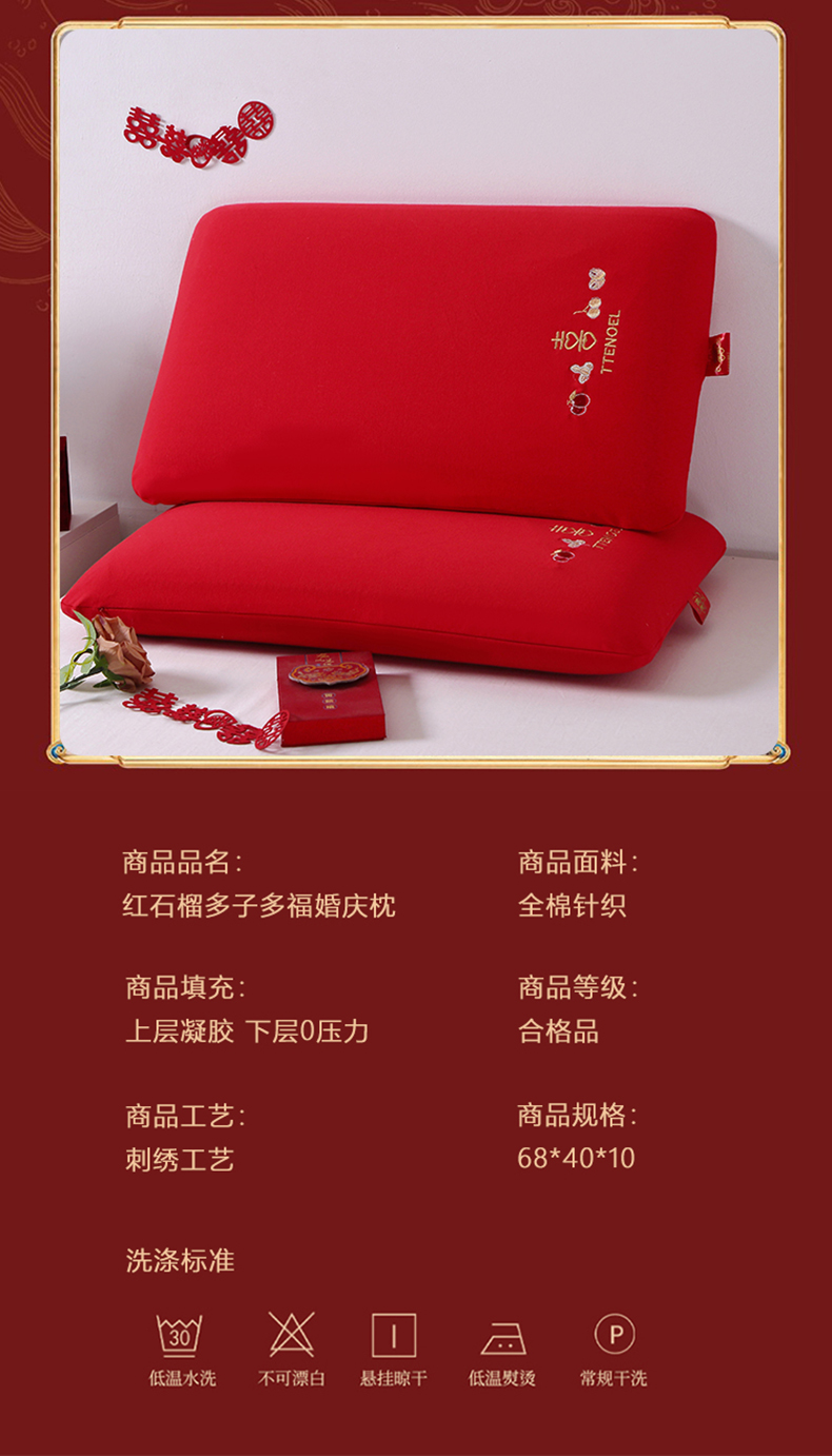 当前位置: 91家纺网 > 商品网购 > 枕头/枕芯/保健枕/颈椎枕 > 普通枕芯 > (总)四川牛皮席 2025新款全棉纯棉针织红石榴多子多福婚庆枕