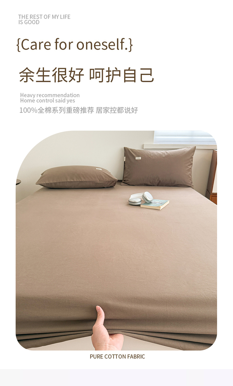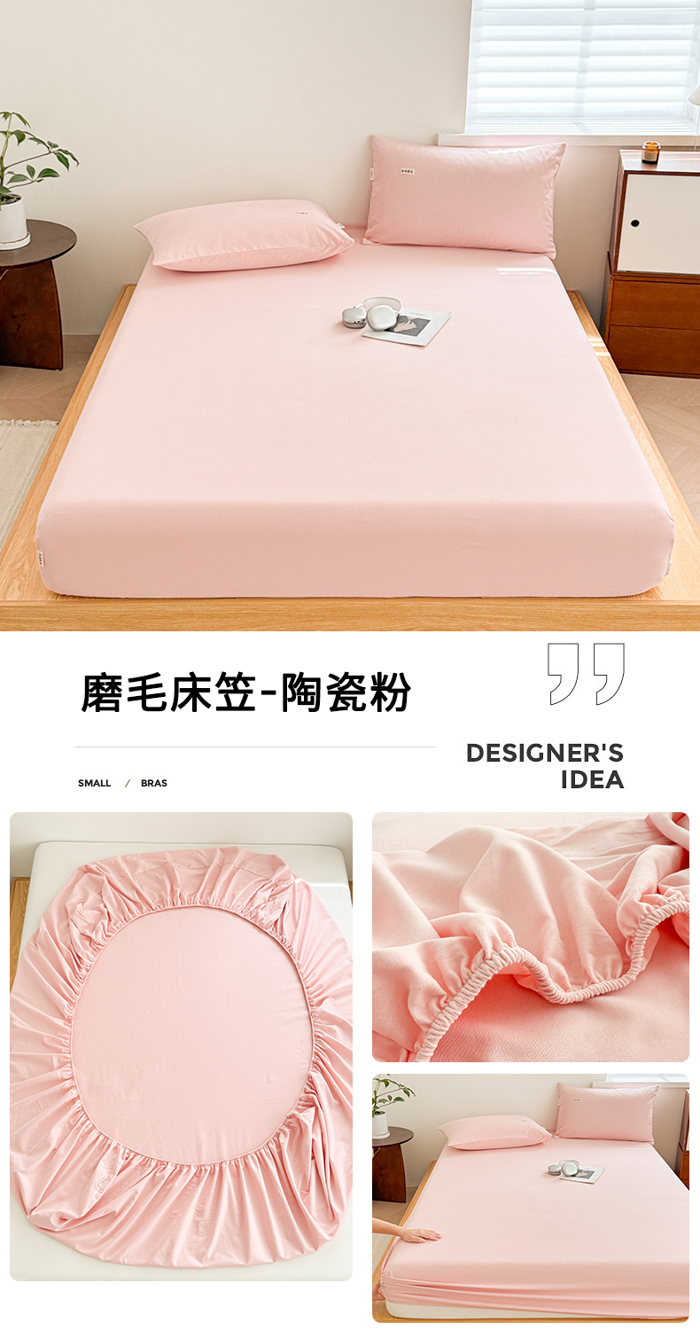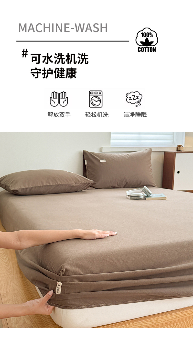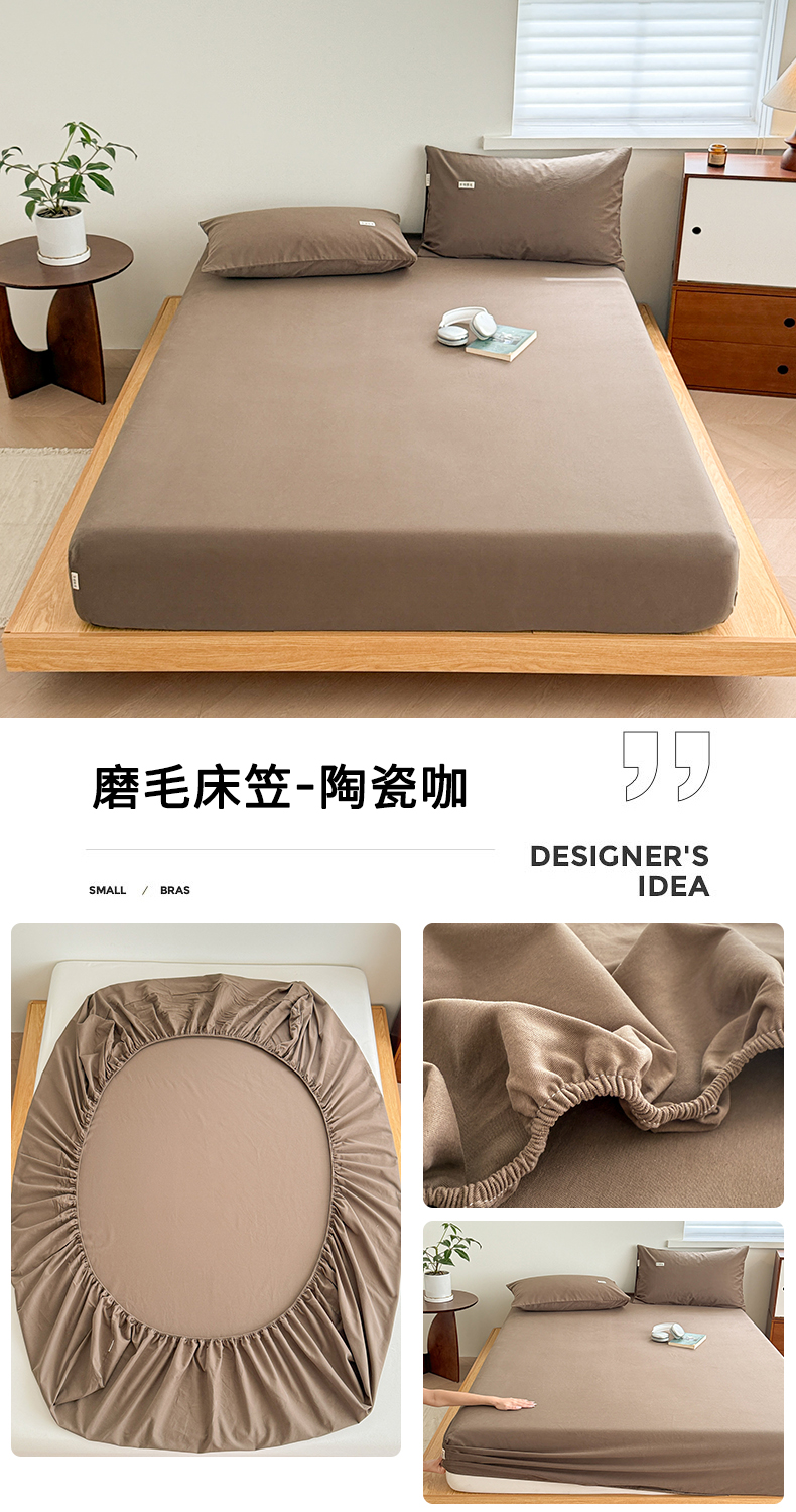 • 91家纺网 家纺一手货源 找家纺 眠博士 2025新款A类纯色全棉磨毛大床床笠三件套 磨毛床笠-陶瓷咖
