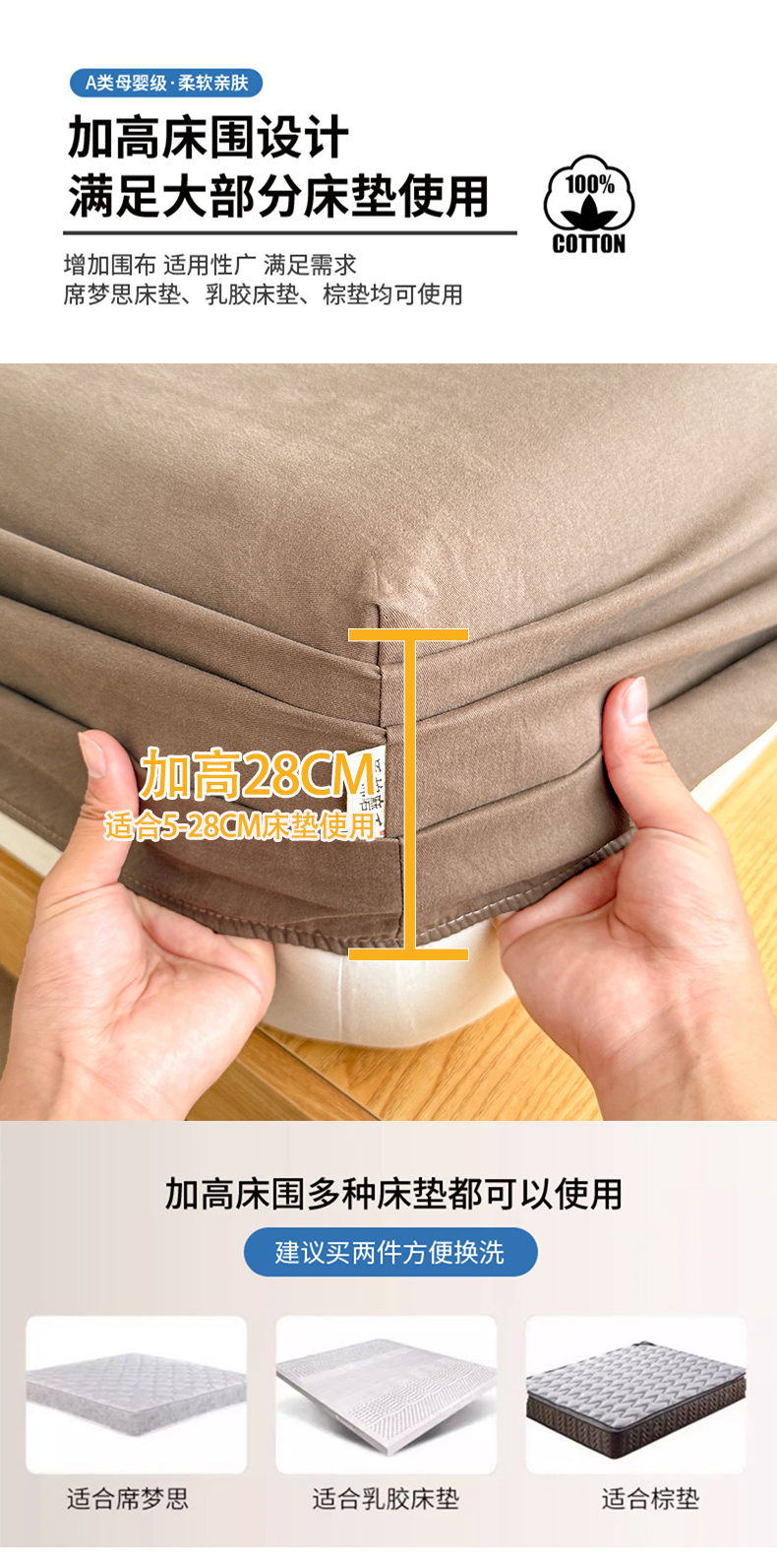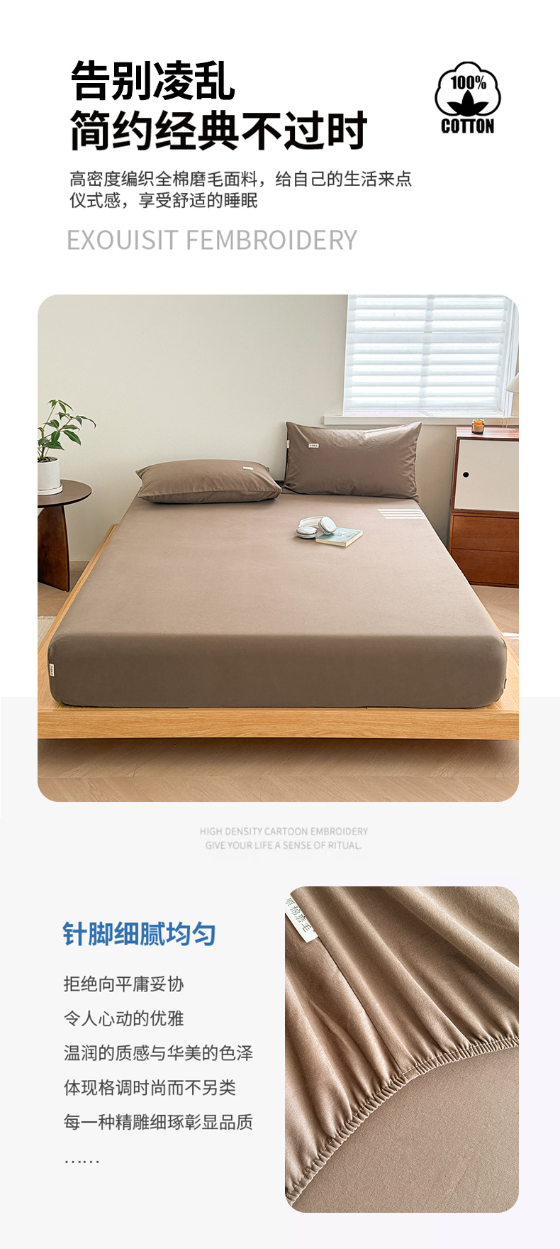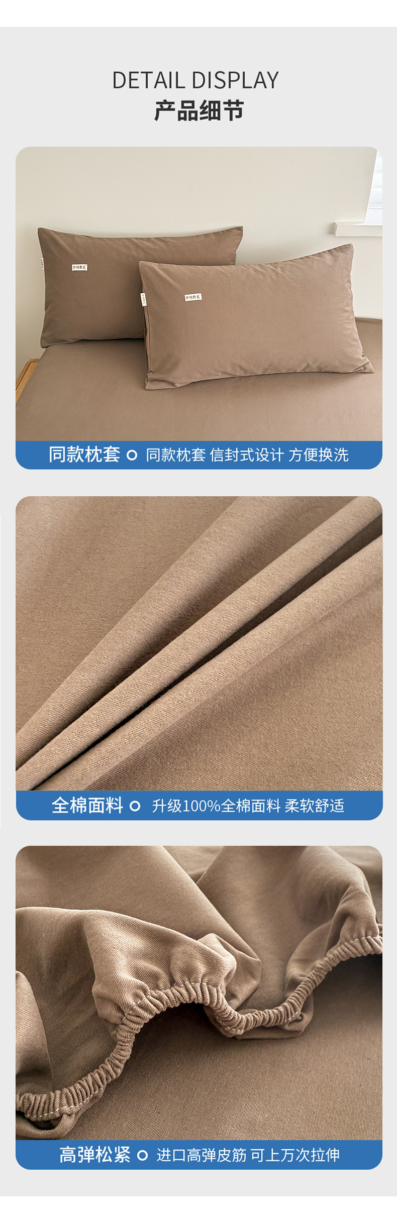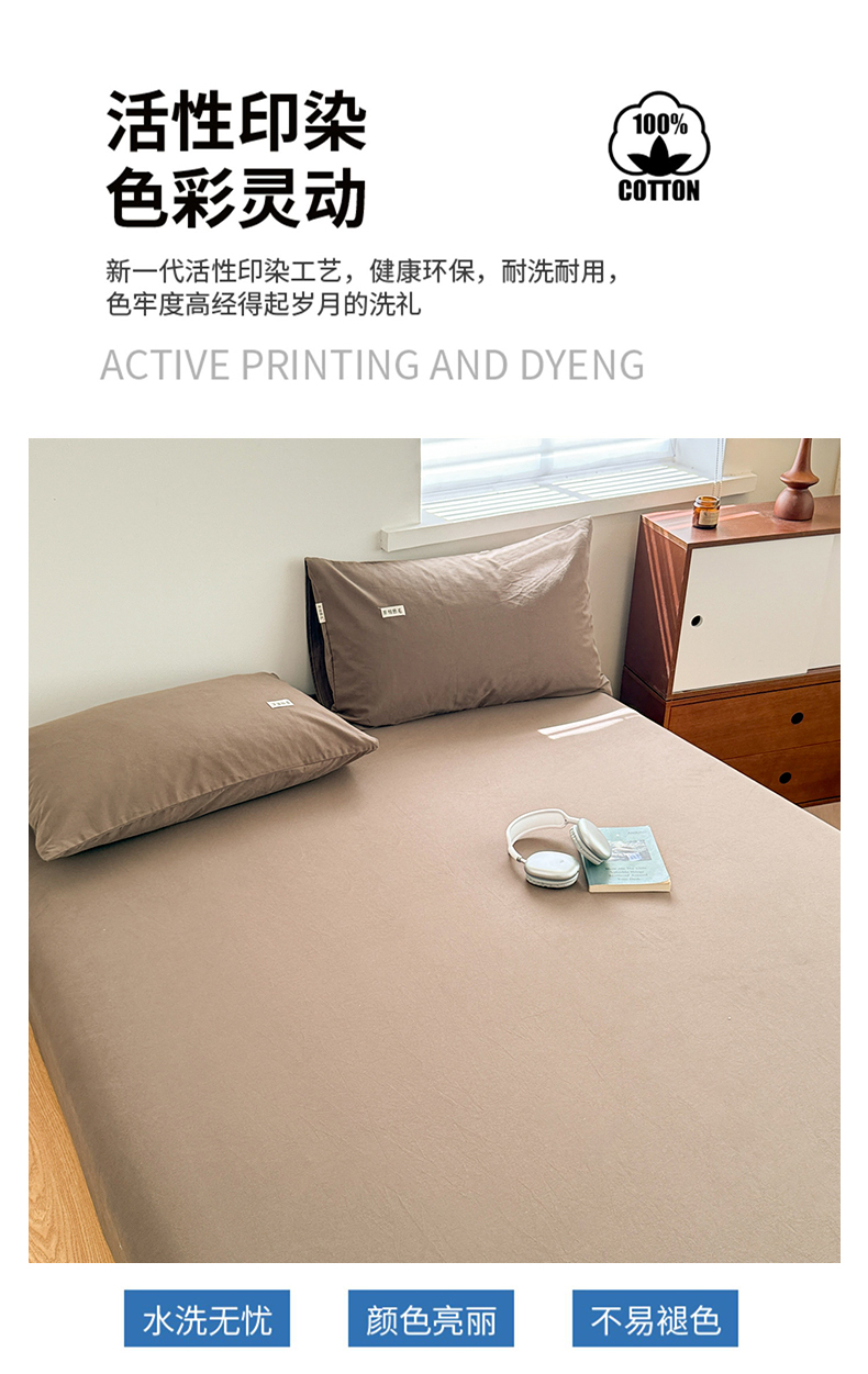 • 91家纺网 家纺一手货源 找家纺 眠博士 2025新款A类纯色全棉磨毛大床床笠三件套 磨毛床笠-陶瓷咖