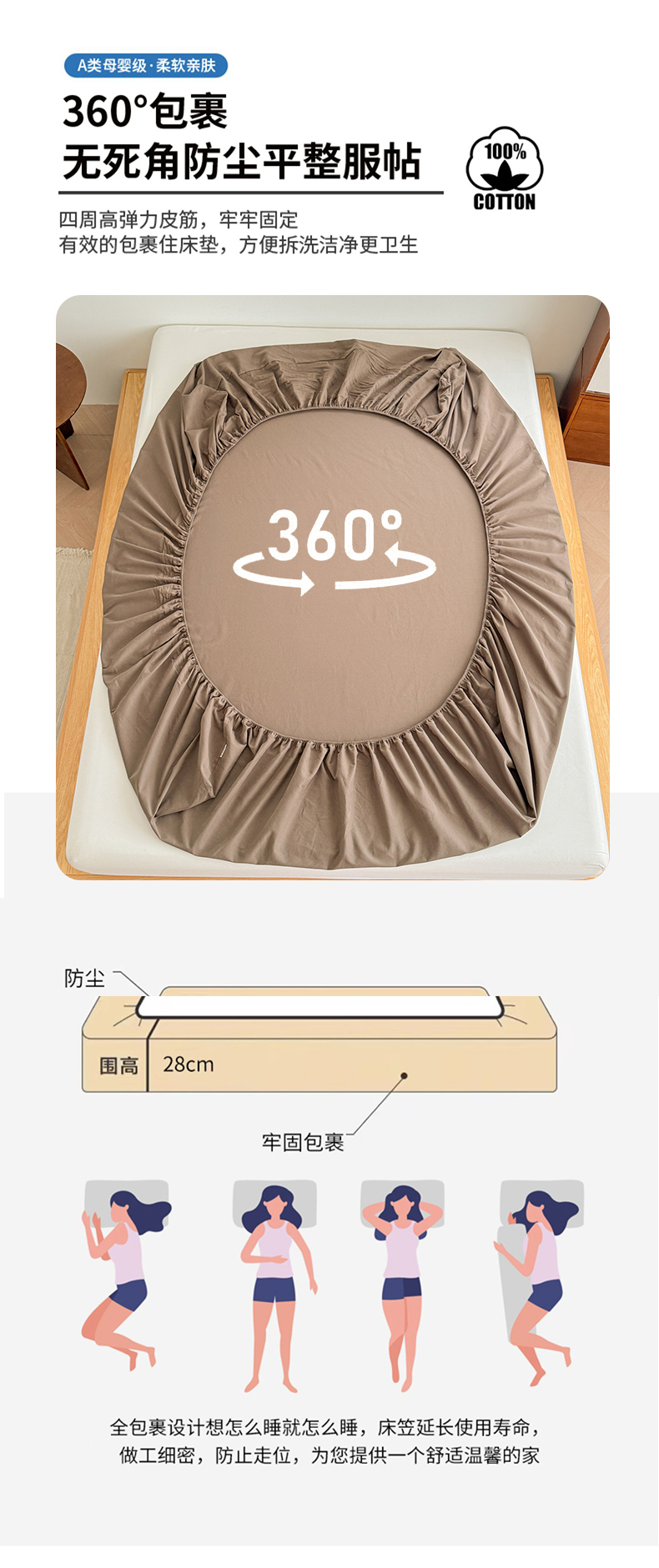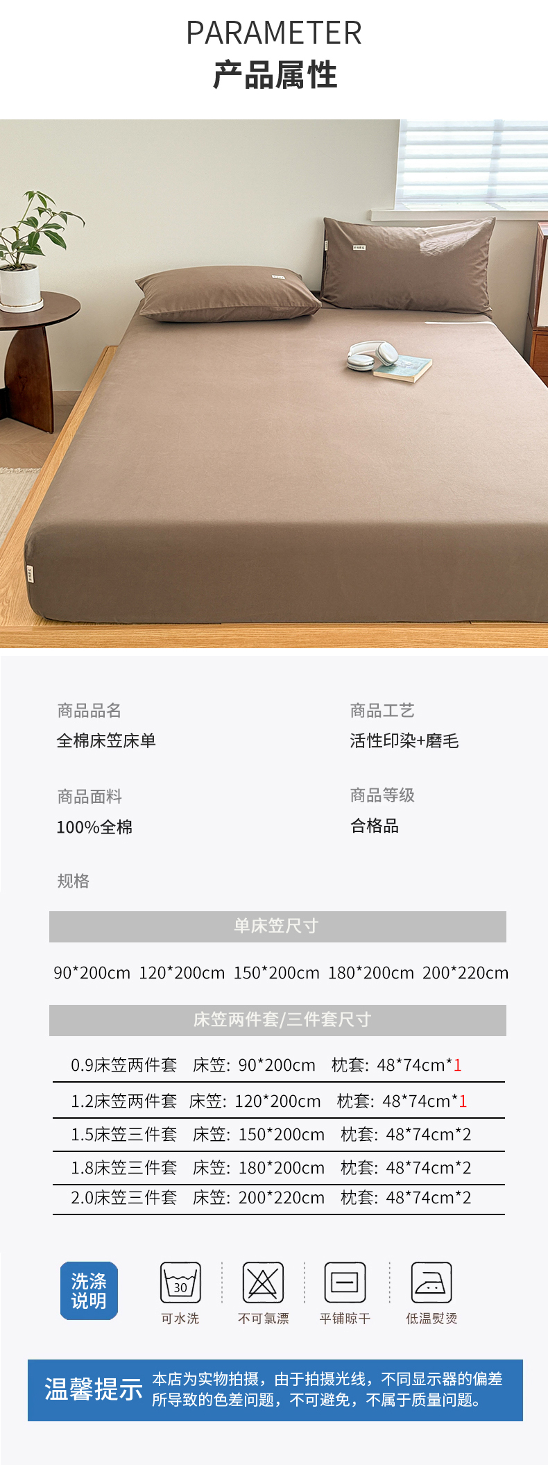 当前位置: 91家纺网 > 商品网购 > 床上用品 > 床笠 > 眠博士 2025新款A类纯色全棉磨毛大床床笠三件套 磨毛床笠-陶瓷咖