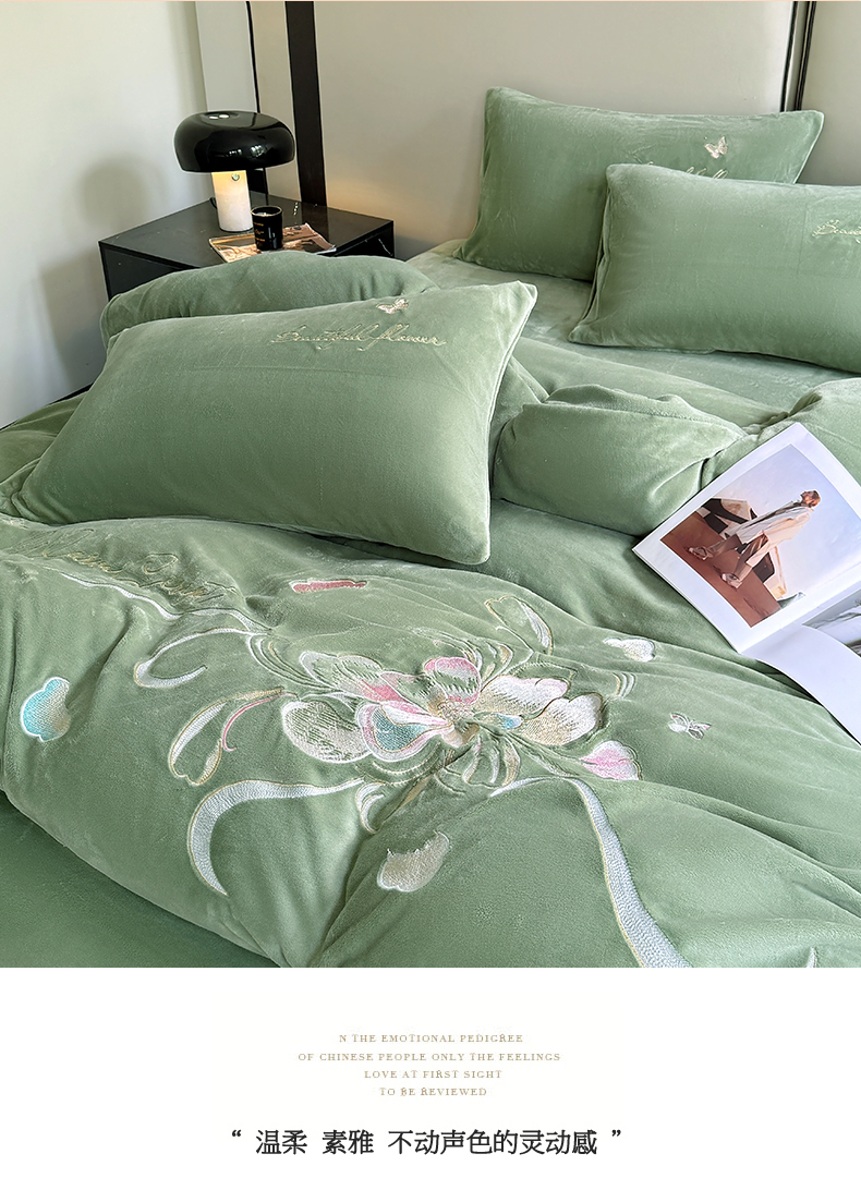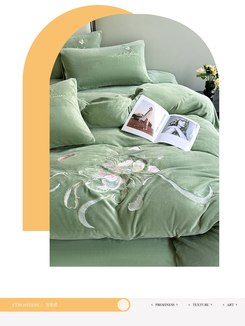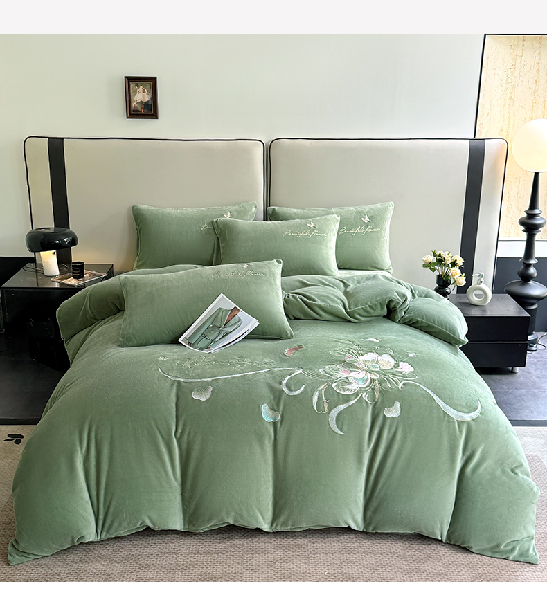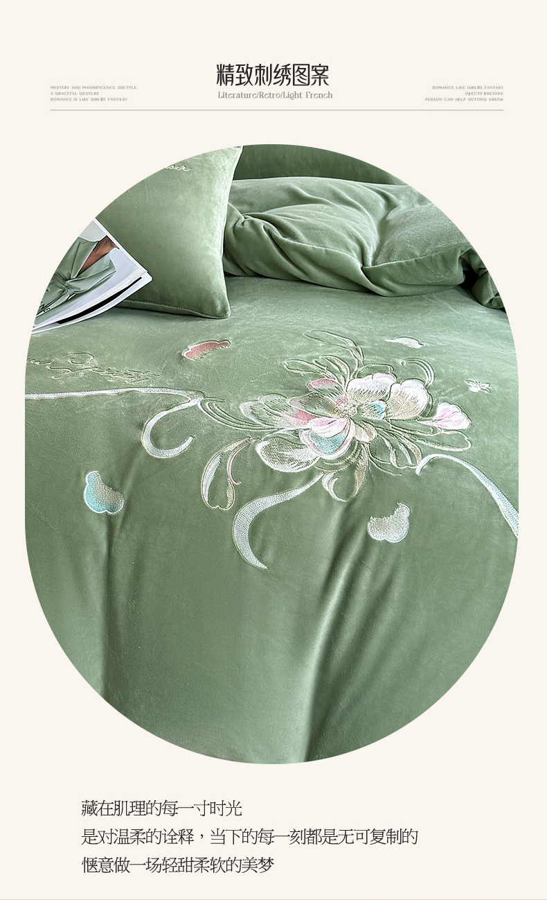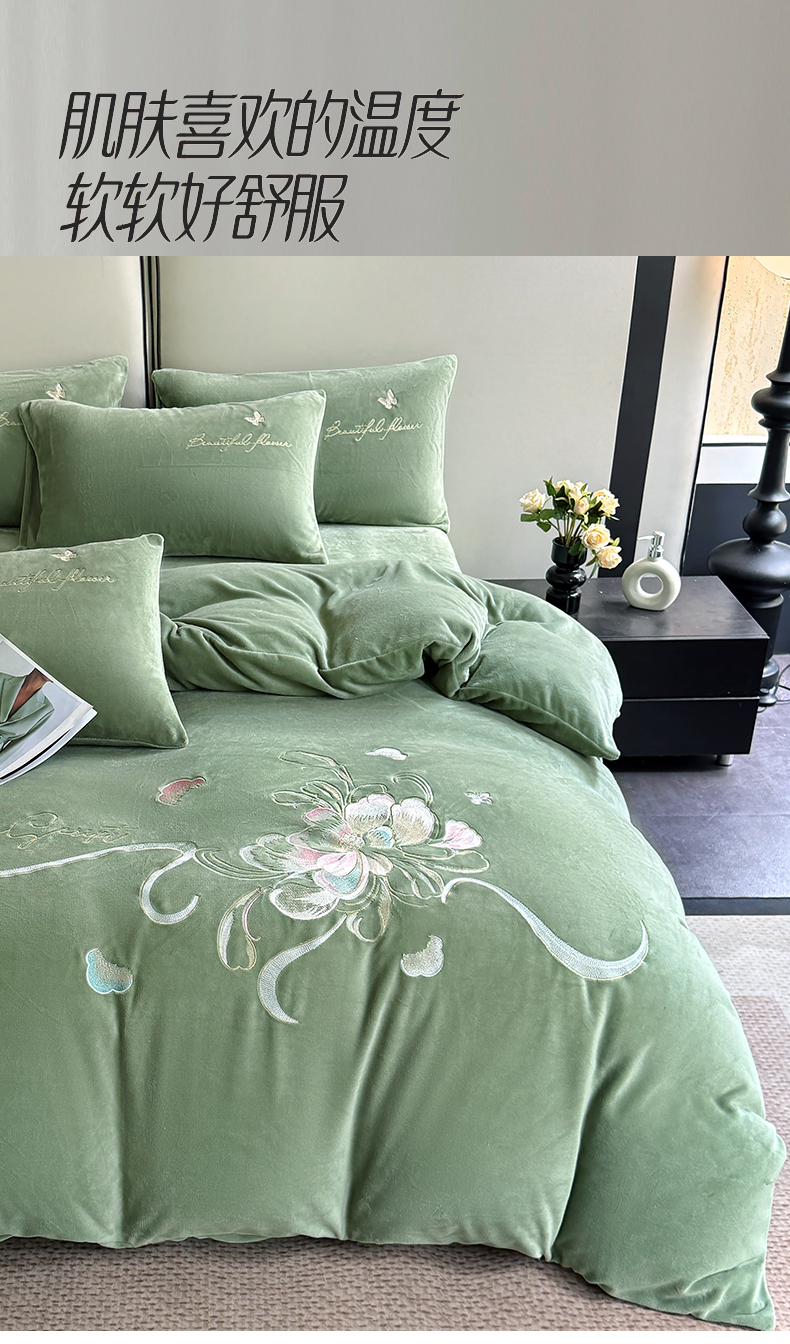 莱凯家纺 2025新款牛奶绒刺绣四件套 花间醉(绿)