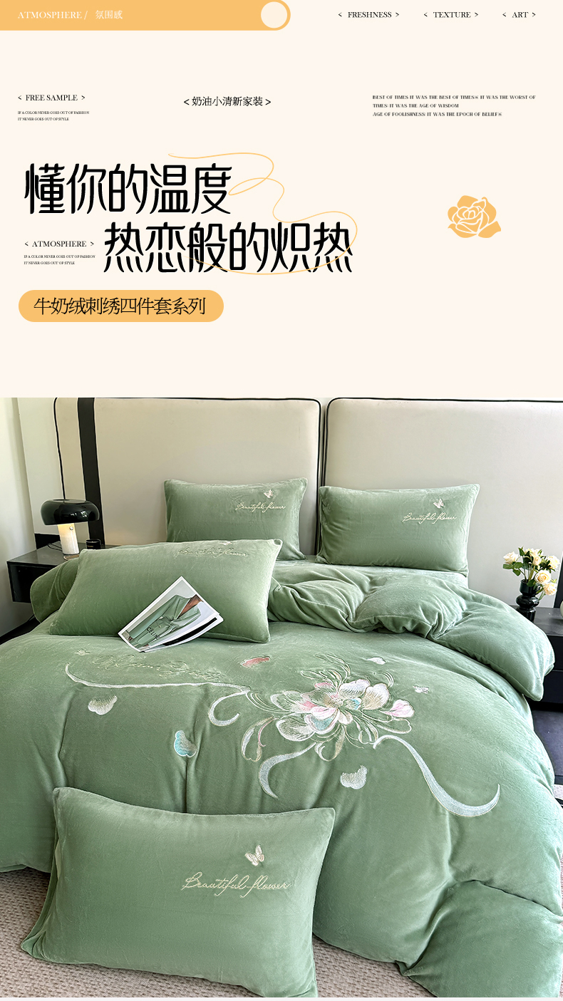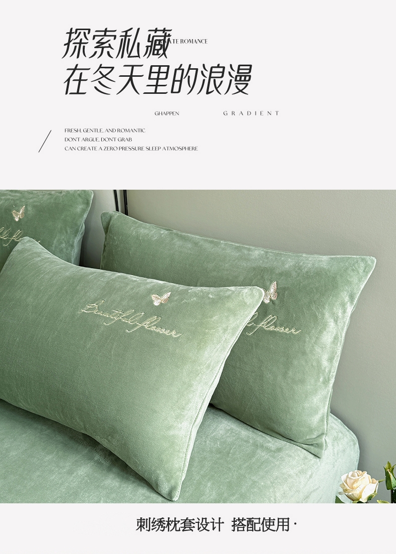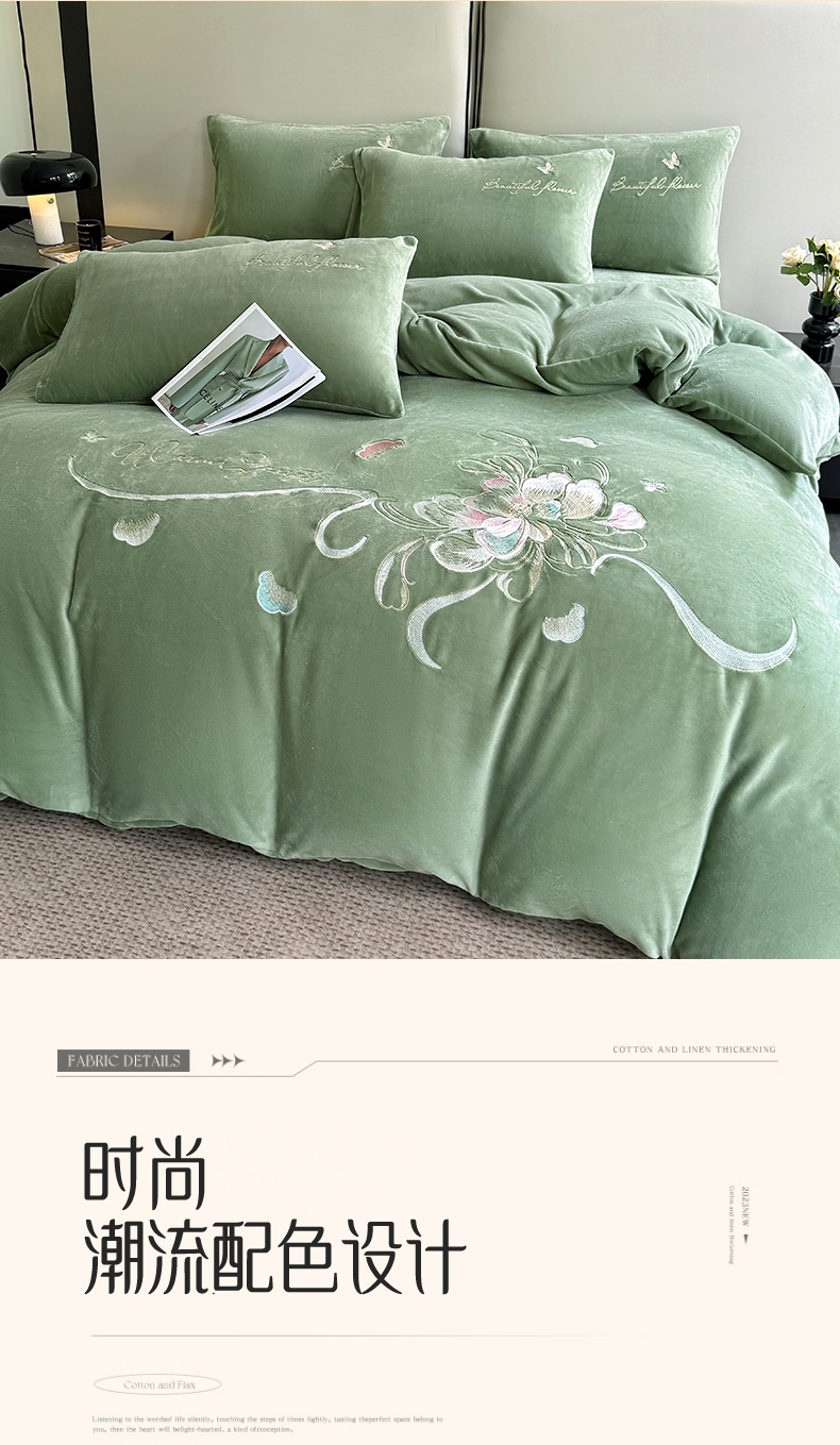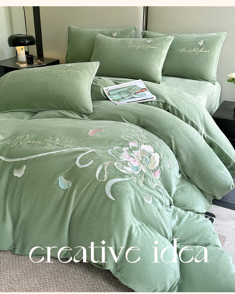 莱凯家纺 2025新款牛奶绒刺绣四件套 花间醉(绿)