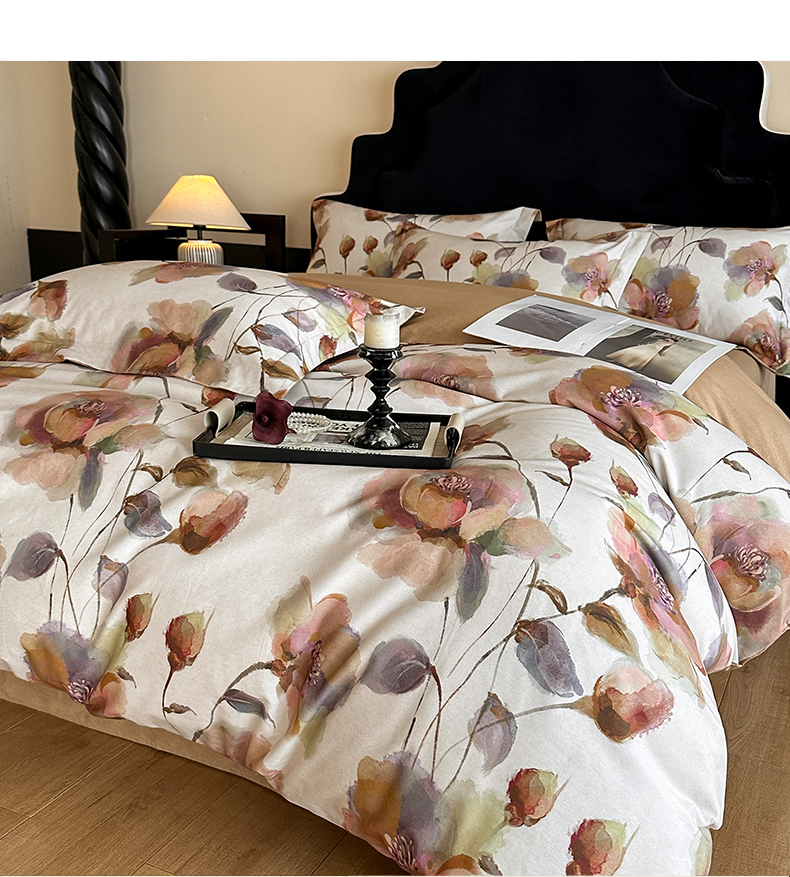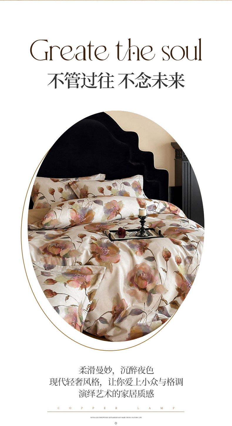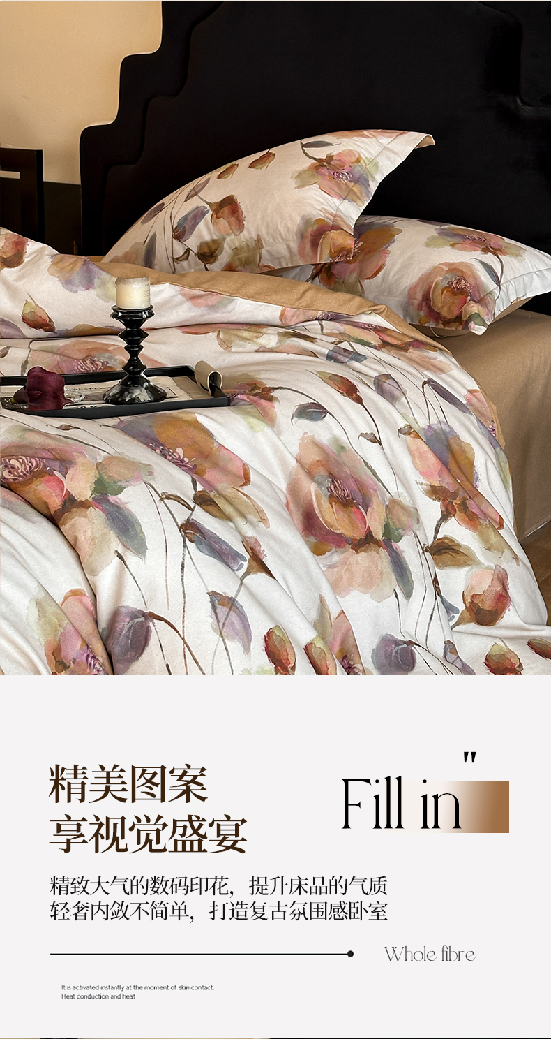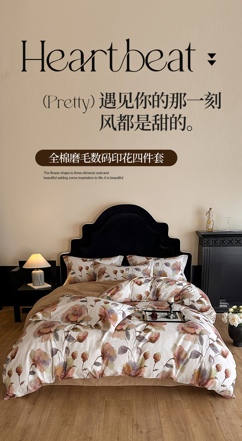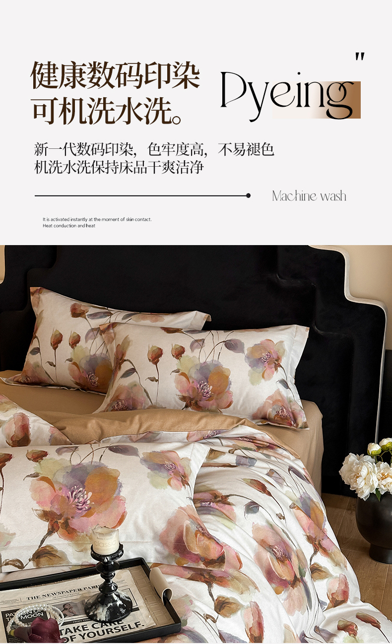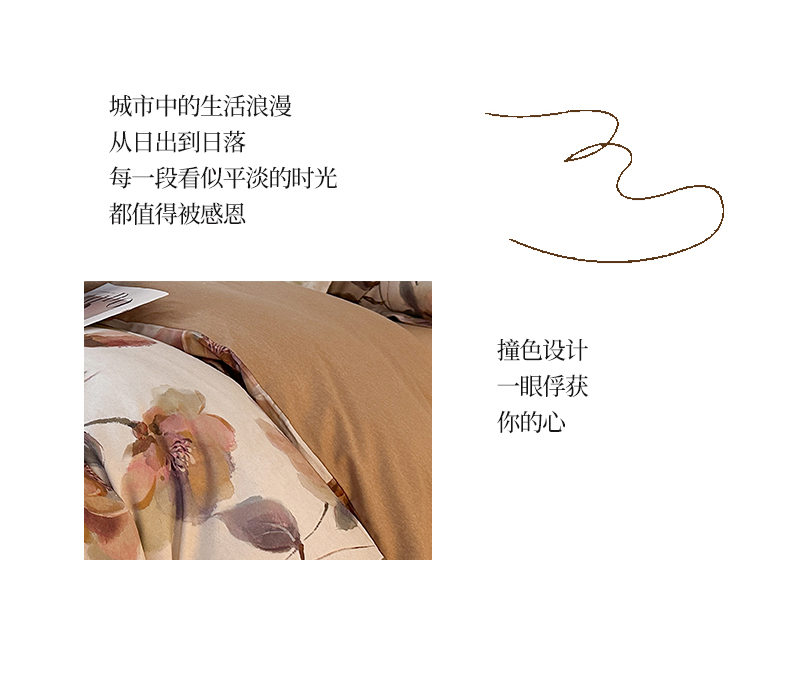 商品名称:羚羊语家纺 2025新款A类全棉生态磨毛100棉数码印花四件套活性磨毛轻奢美拉德系简约花卉床单床笠三件套 浮光跃