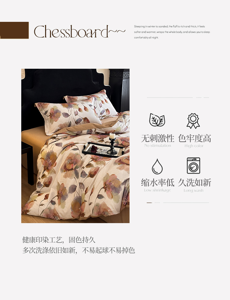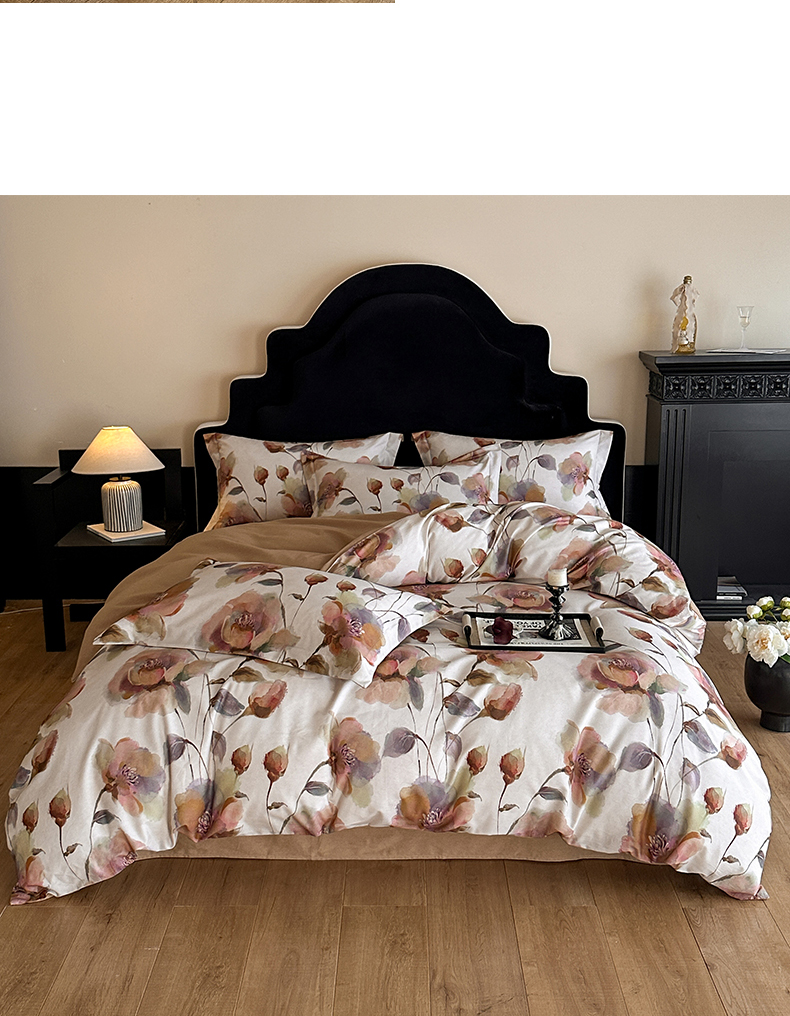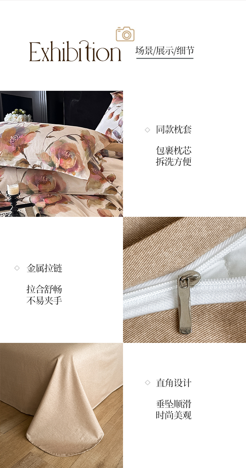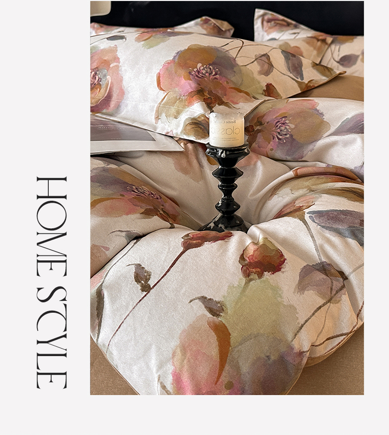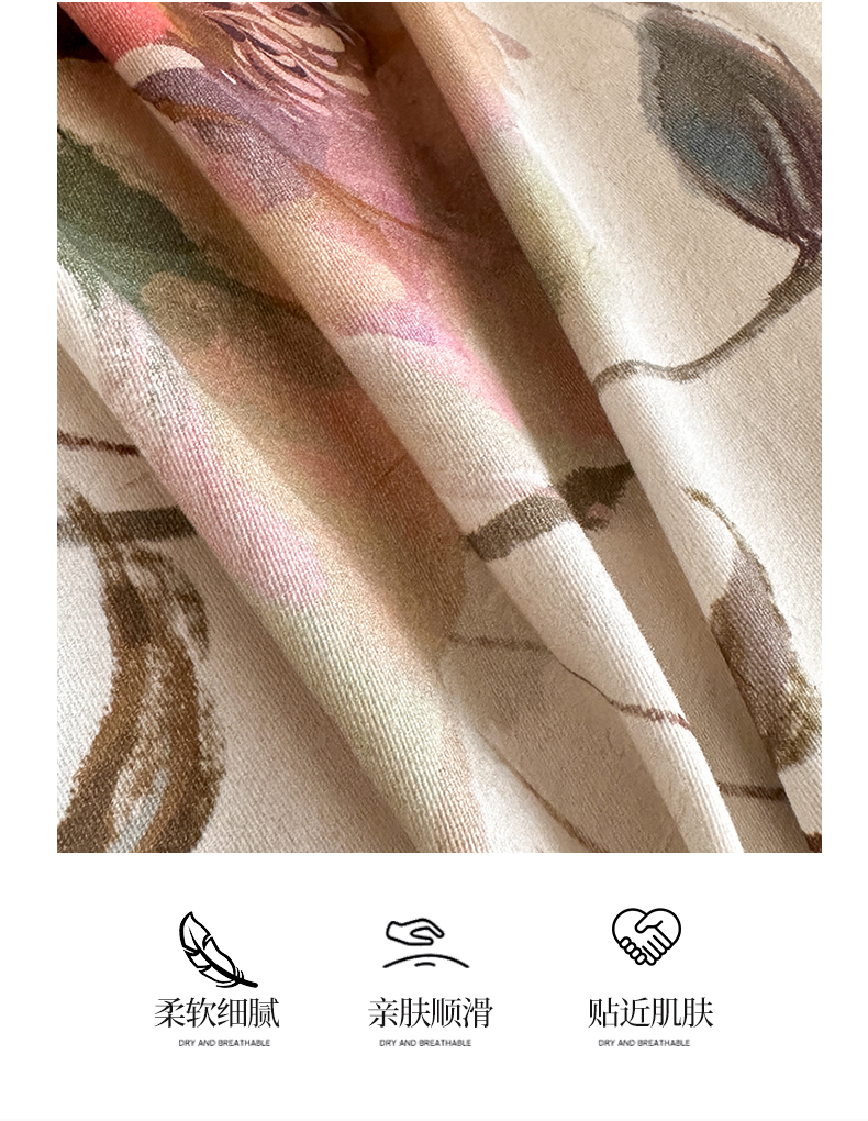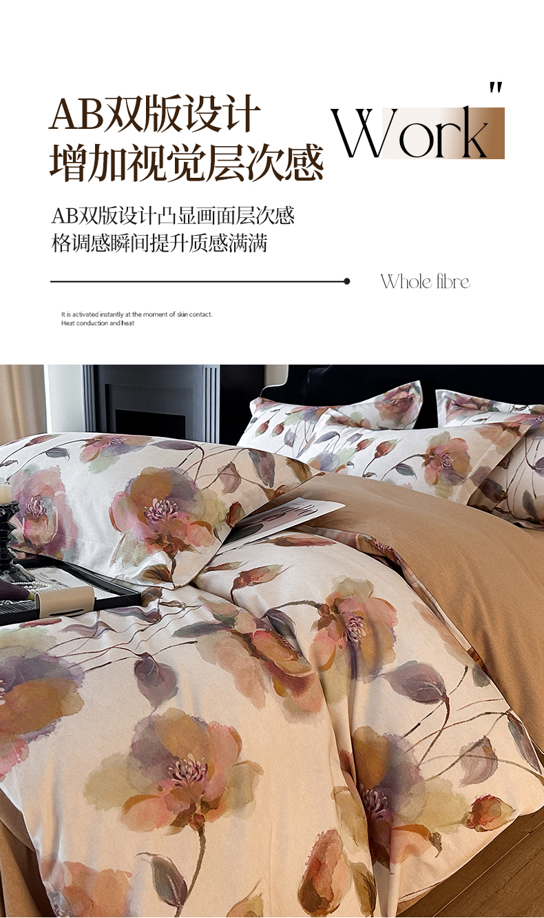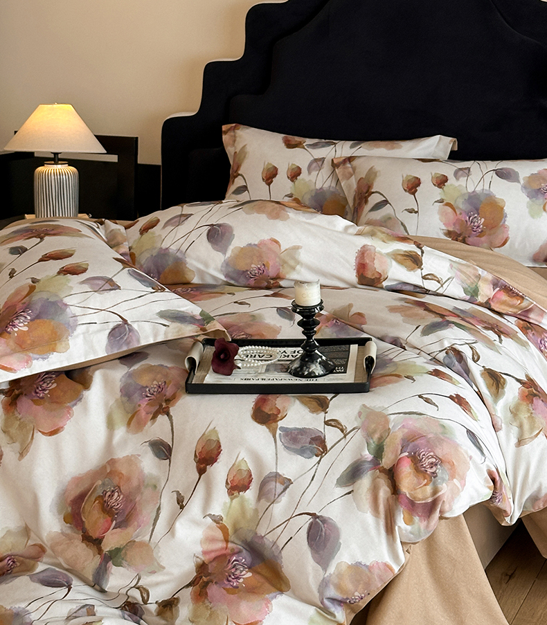 商品名称:羚羊语家纺 2025新款A类全棉生态磨毛100棉数码印花四件套活性磨毛轻奢美拉德系简约花卉床单床笠三件套 浮光跃