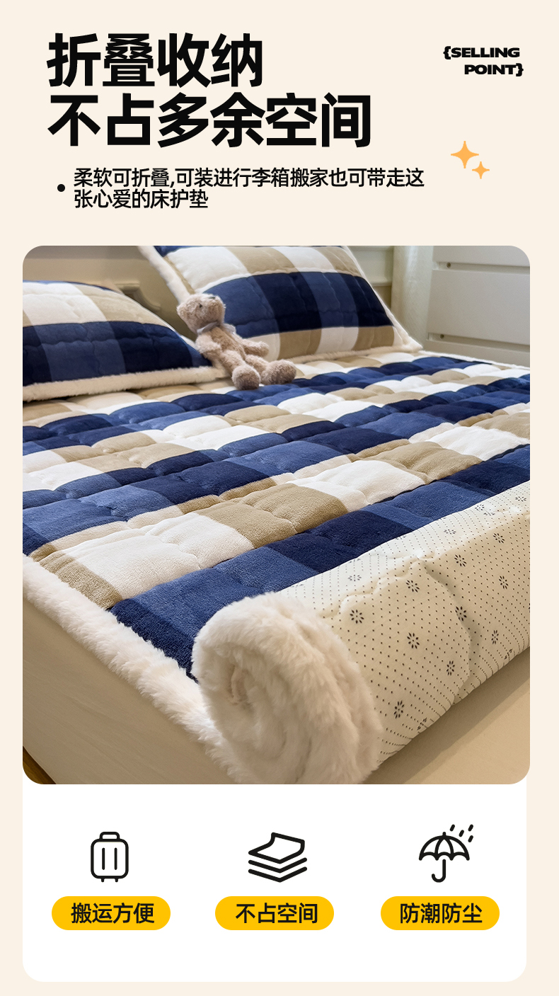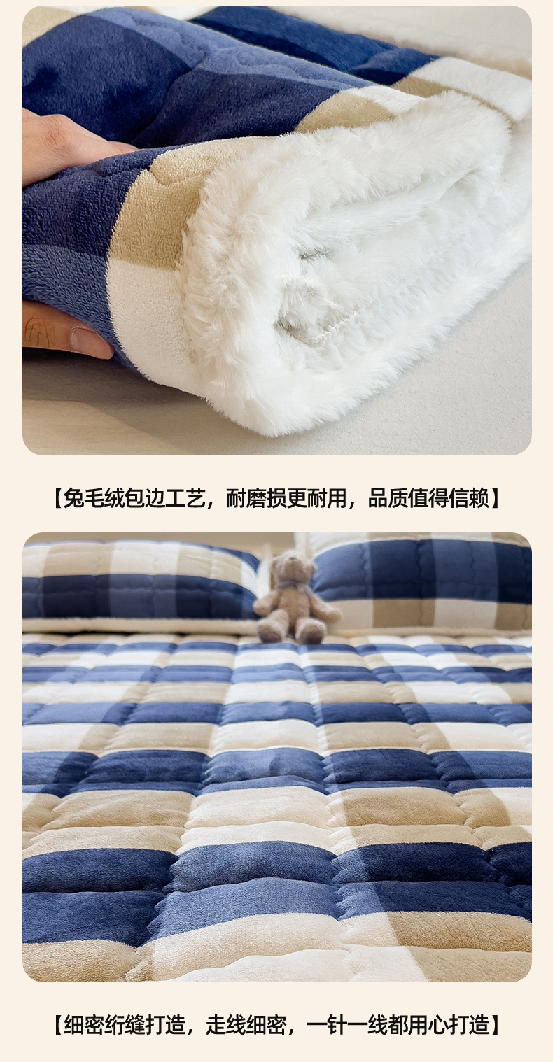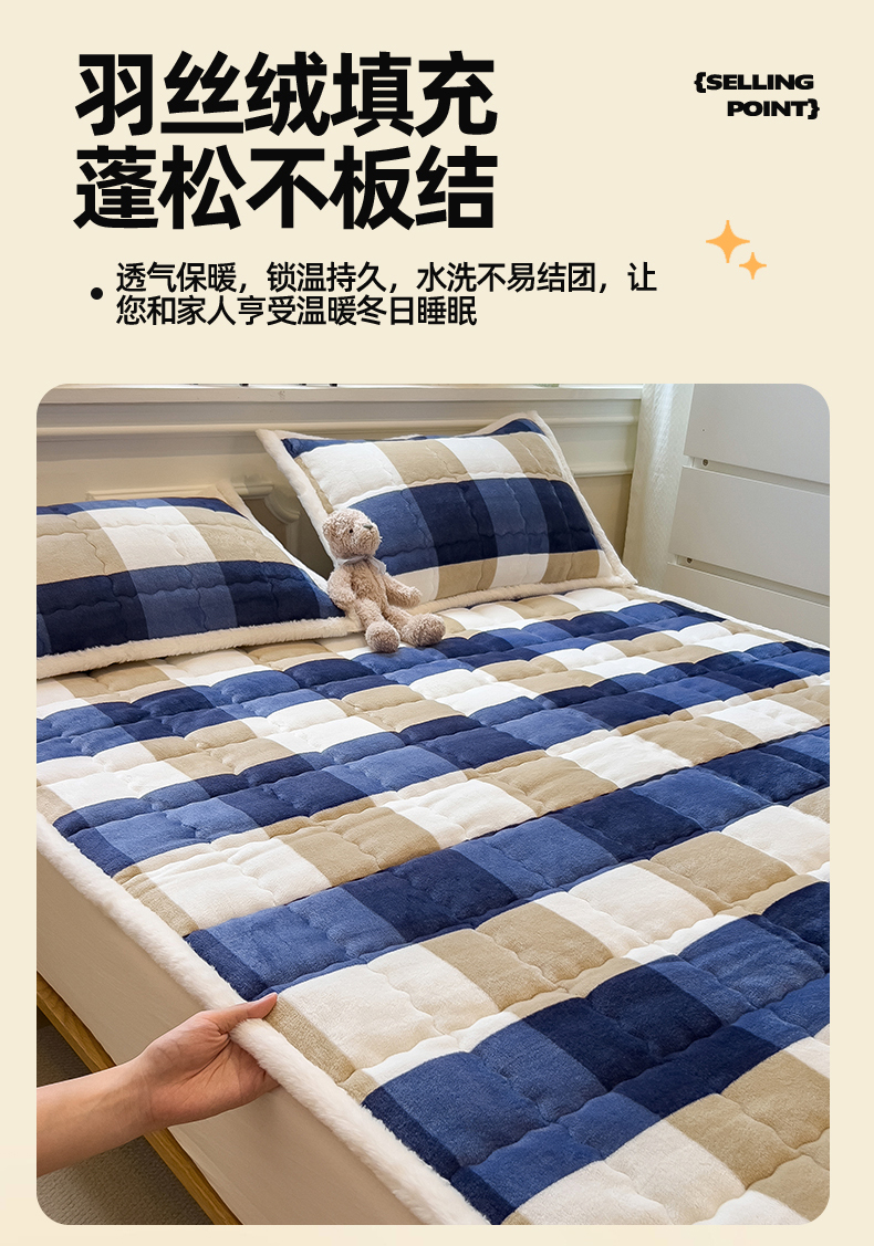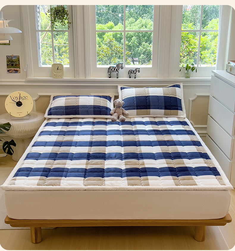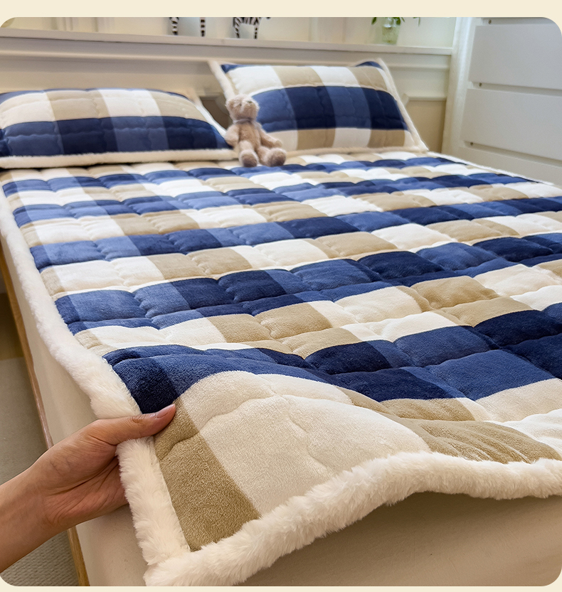 迪梦思家纺 2025新款A类牛奶绒无印风格子床褥床护垫学生床垫--大床图 平铺款-蓝简格