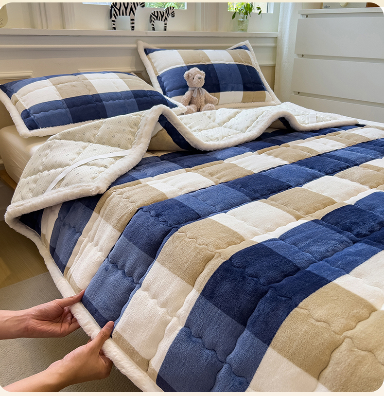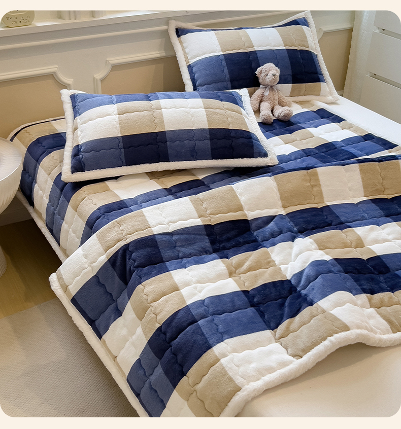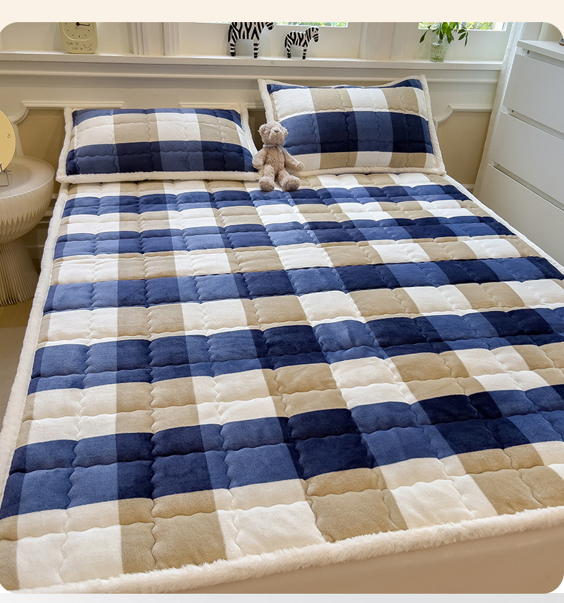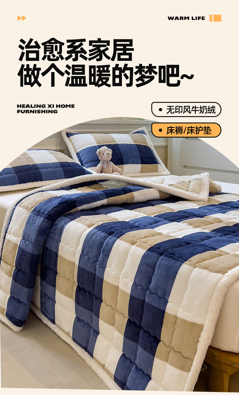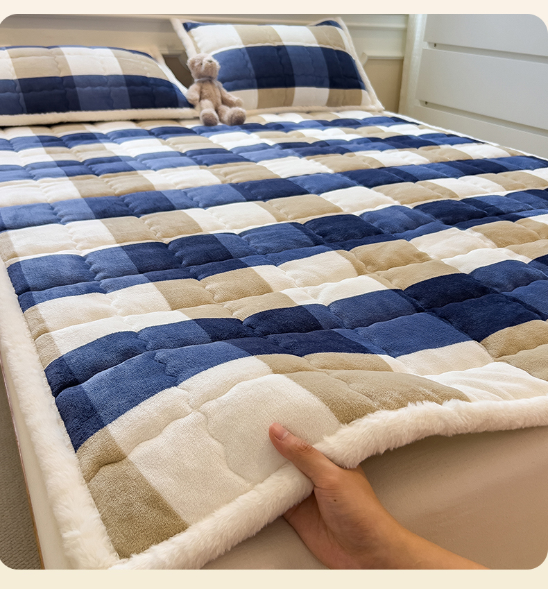 迪梦思家纺 2025新款A类牛奶绒无印风格子床褥床护垫学生床垫--大床图 平铺款-蓝简格