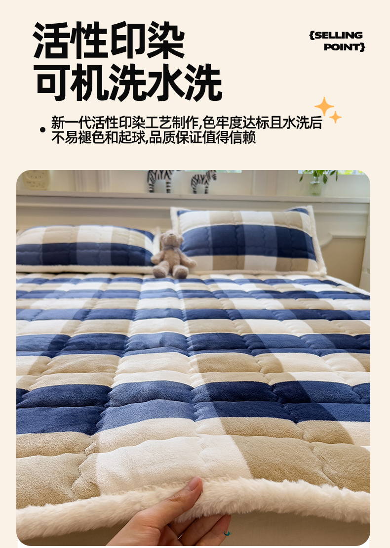 商品名称:迪梦思家纺 2025新款A类牛奶绒无印风格子床褥床护垫学生床垫--大床图 平铺款-蓝简格