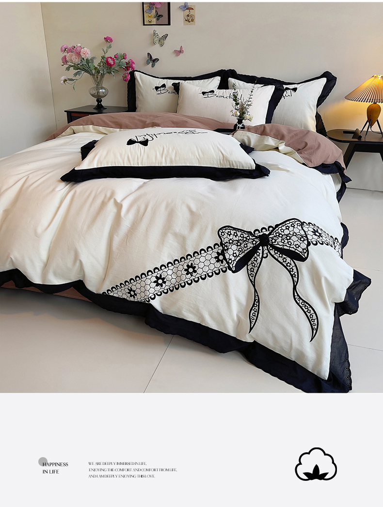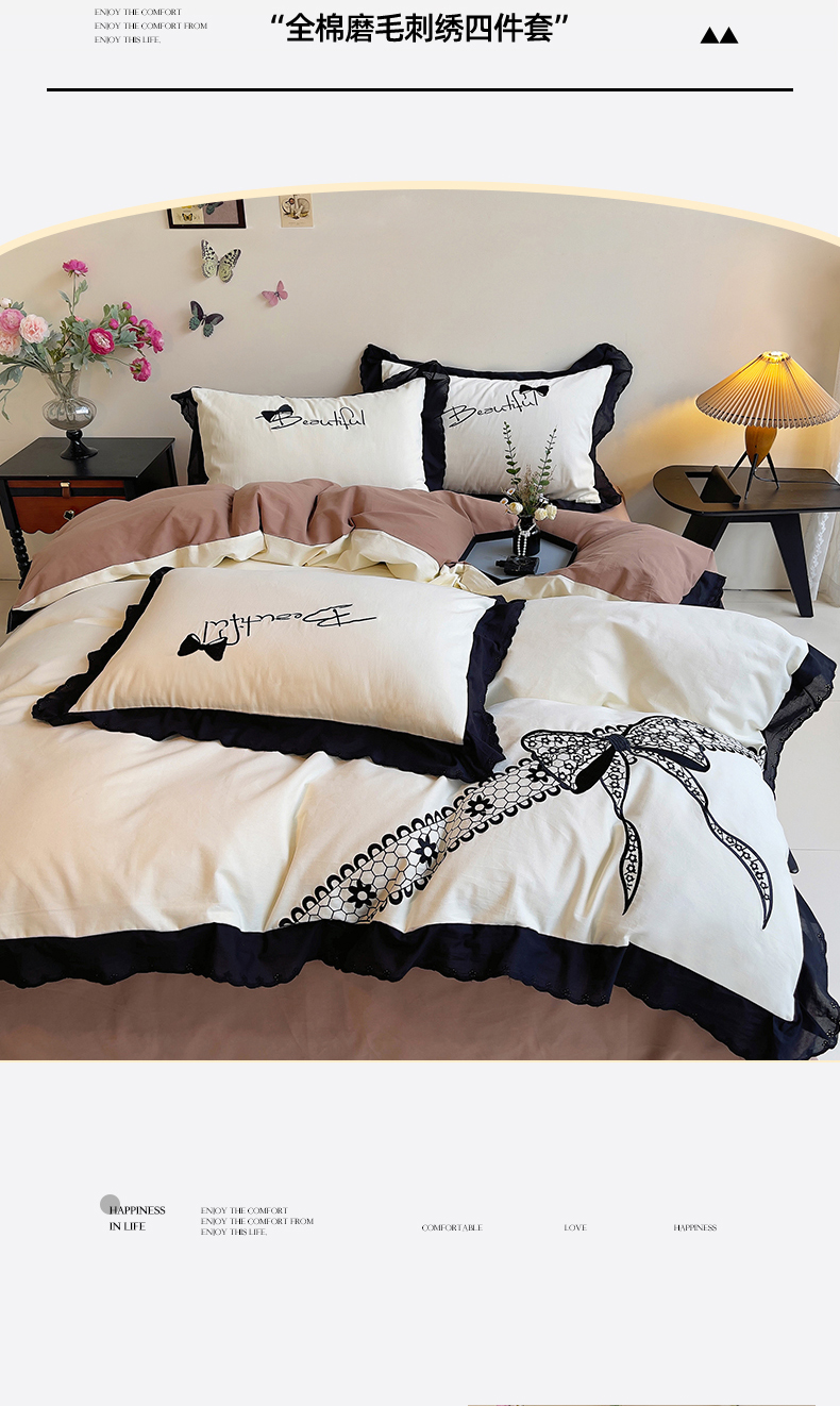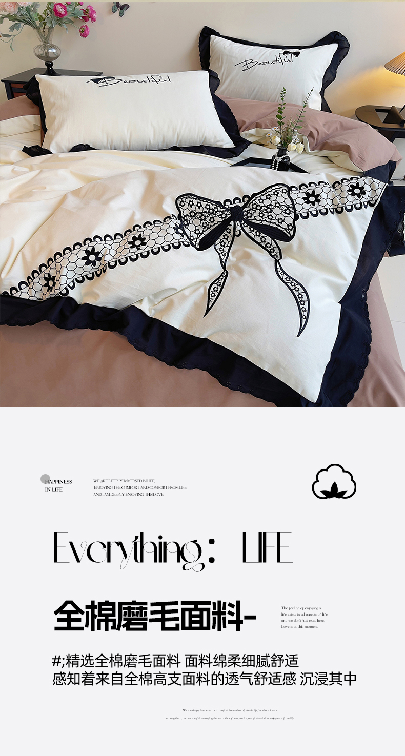 当前位置: 91家纺网 > 商品网购 > 床品套件 > 四件套 > 普通磨毛四件套 > 炫拼家纺 2026新款全棉纯棉韩版磨毛刺绣镂空花边纯棉四件套-邂逅系列 邂逅-奶昔白