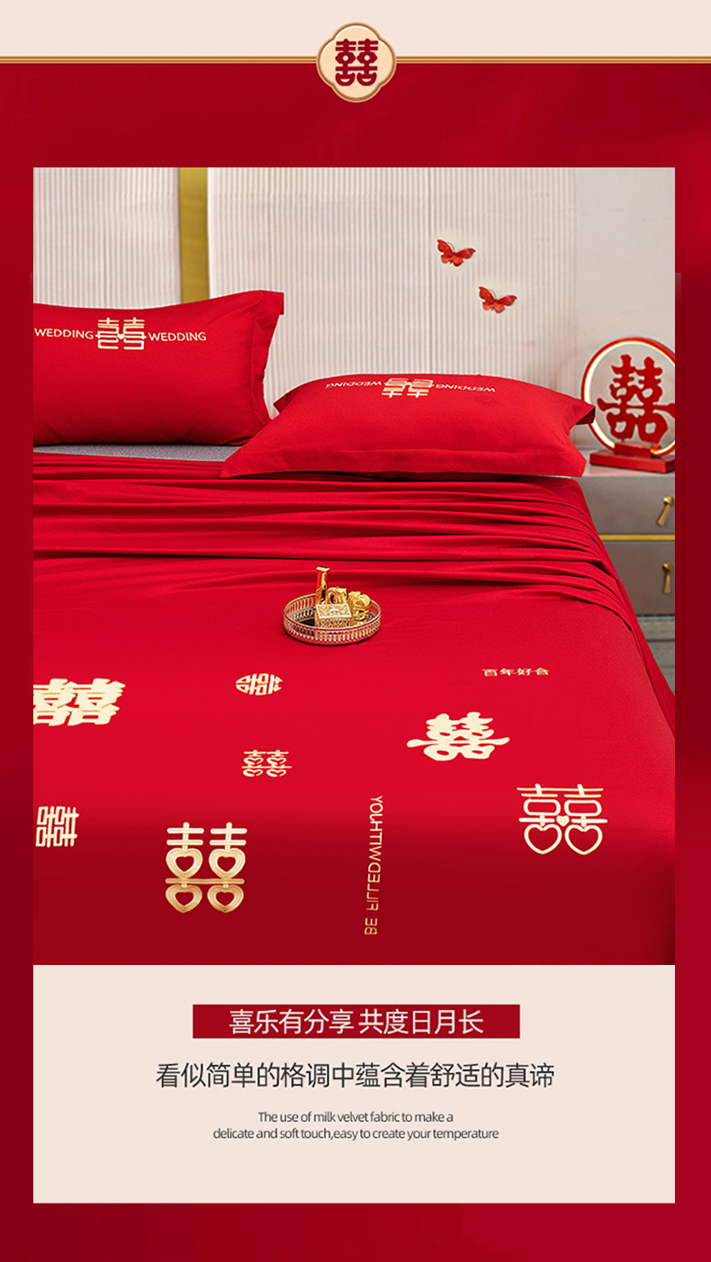 (总)卓缦家纺 2025新款牛奶绒豆豆绒婚庆四件套,双喜临门,欢欢喜喜,龙悦凤鸣,牡丹之恋,心语心愿