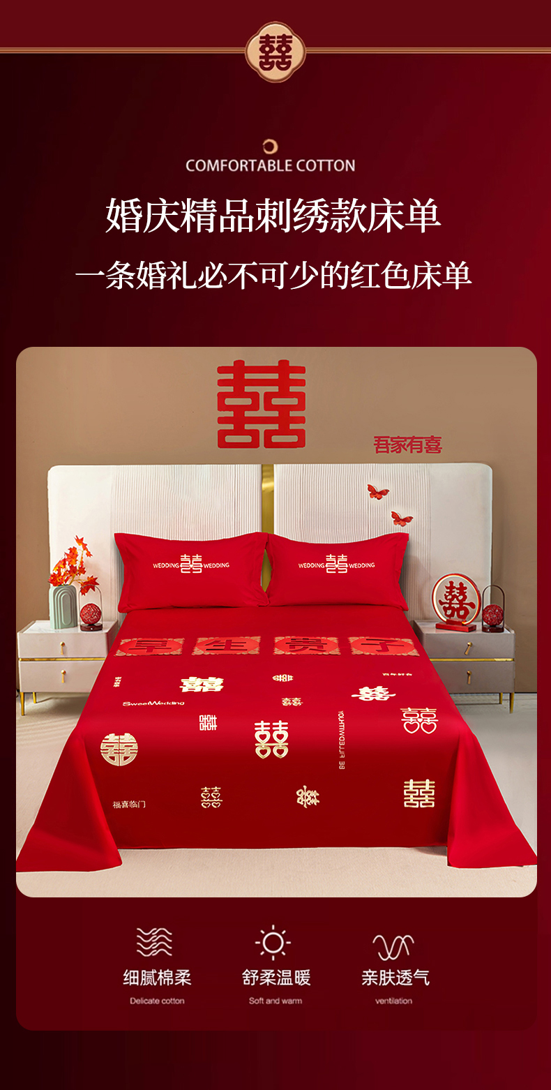 当前位置: 91家纺网 > 商品网购 > 床上用品 > 床单 > 卓缦家纺 2025新款水洗磨毛婚庆床单/床笠 千喜图