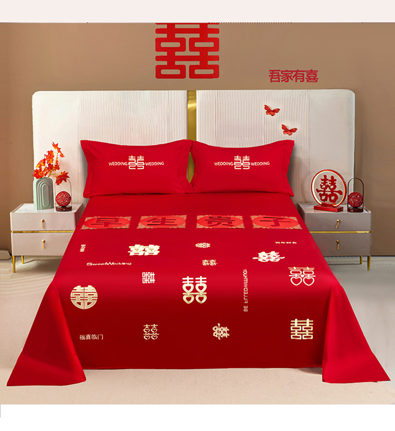 卓缦家纺 2025新款水洗磨毛婚庆床单/床笠 千喜图
