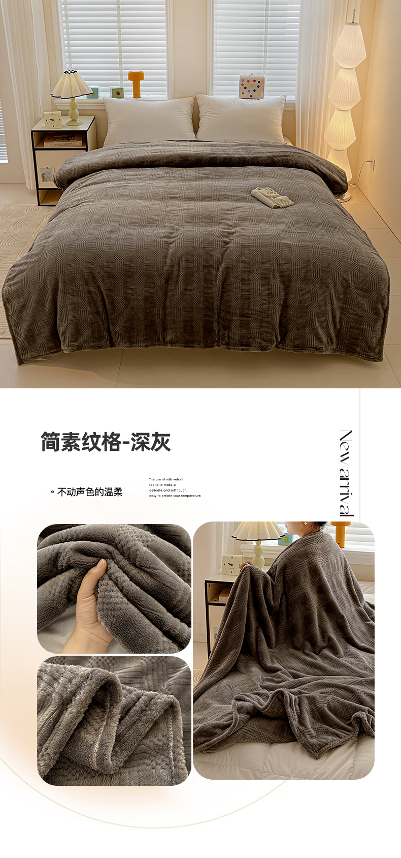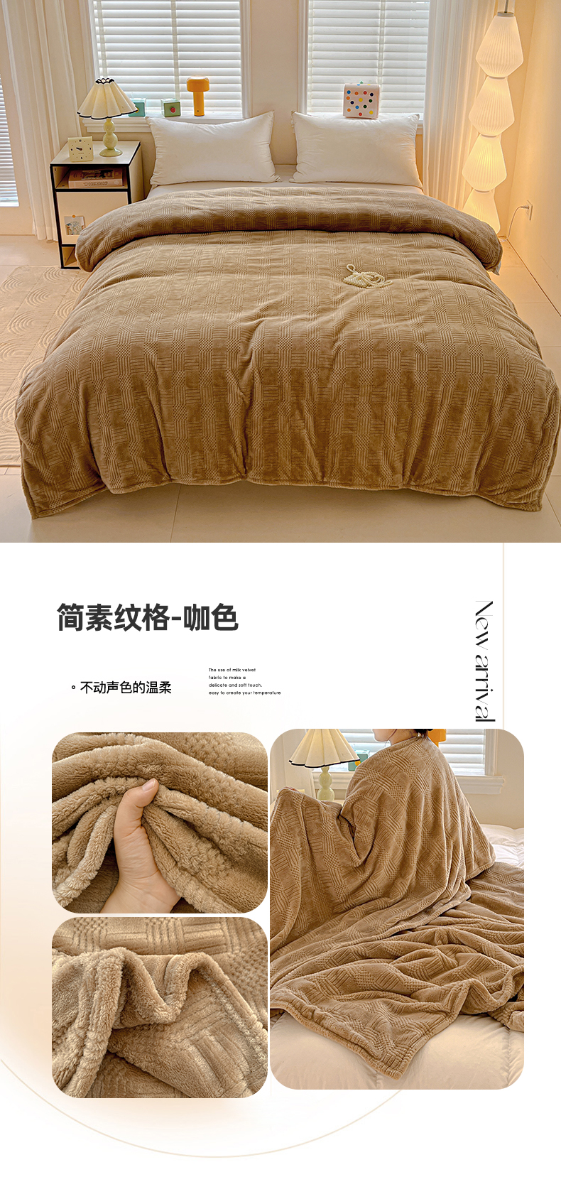 (总)美洲琳 2025新款提花简约珊瑚绒法莱绒毯毛毯毯子,白色,粉色,咖色,蓝灰,绿色,深灰