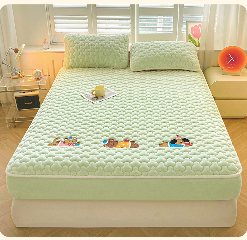 (总)雯豆家纺 2025新款刺绣牛奶绒夹棉床笠绣花款卡通床笠三件套,萌宠-薄荷绿,萌宠-点黄,萌宠-格调粉,萌宠-山茶杏,萌宠-深空灰,萌宠-天蓝,萌宠-雪青,萌宠-玉颜粉
