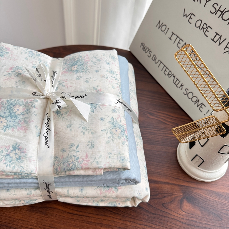 当前位置: 91家纺网 > 商品网购 > 床品套件 > 四件套 > 双层纱四件套 > 爱思佳 2024新款A类母婴全棉双层纱印花四件套直播热卖系列三 叠拍图 仲夏