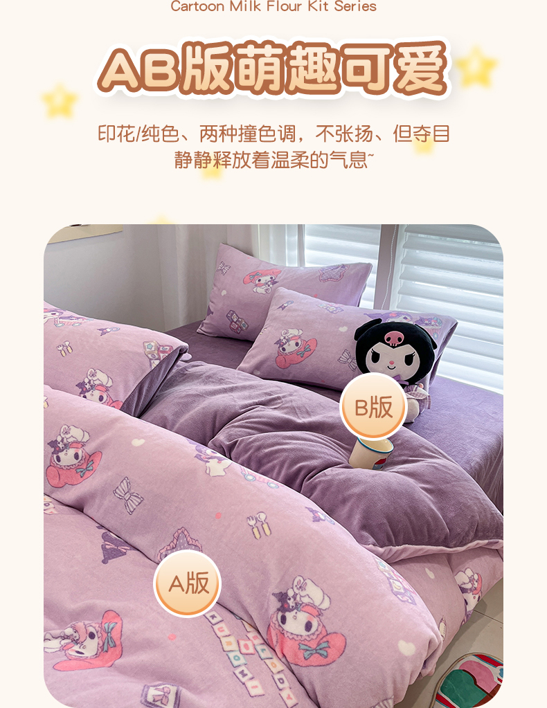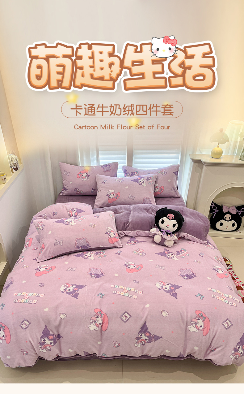 当前位置: 91家纺网 > 商品网购 > 床品套件 > 四件套 > 牛奶绒四件套 > 孩子王家纺 2025新款正版授权卡通牛奶绒小版奥特曼-三丽鸥(含防伪码) 布丁库洛米