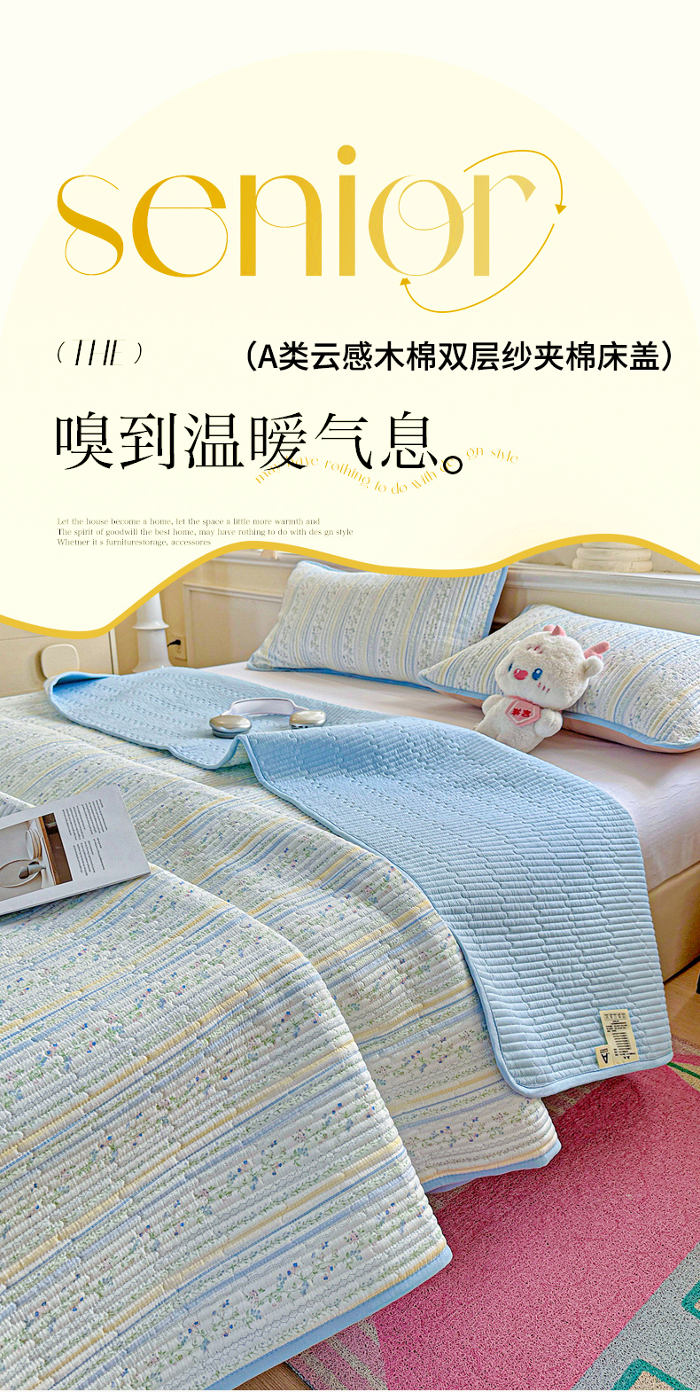 恒尚居 2025新款双层纱床盖床盖单品单床盖云感夹棉床单床垫软床垫-四季款【系列二】 【阳光庄园】双层纱
