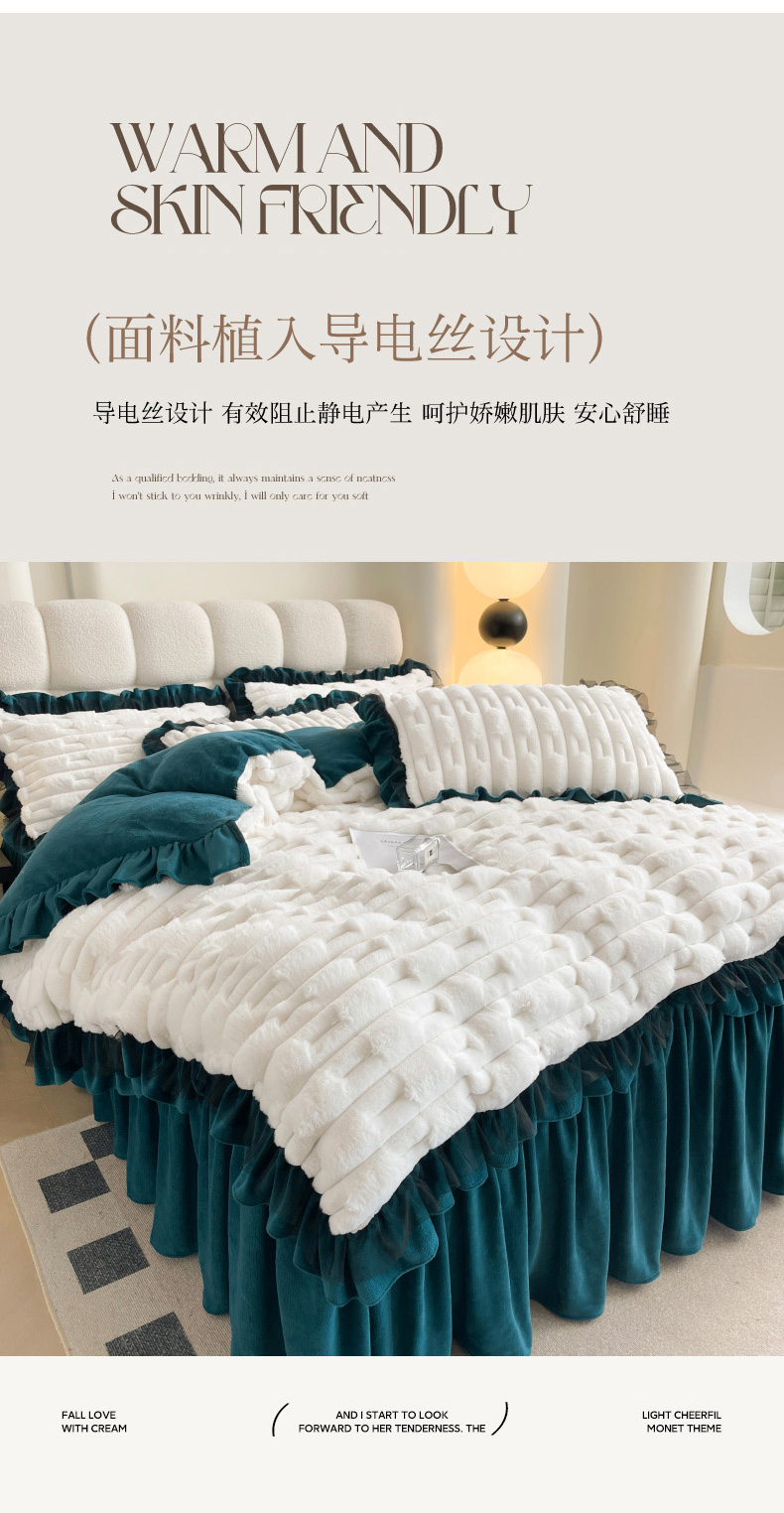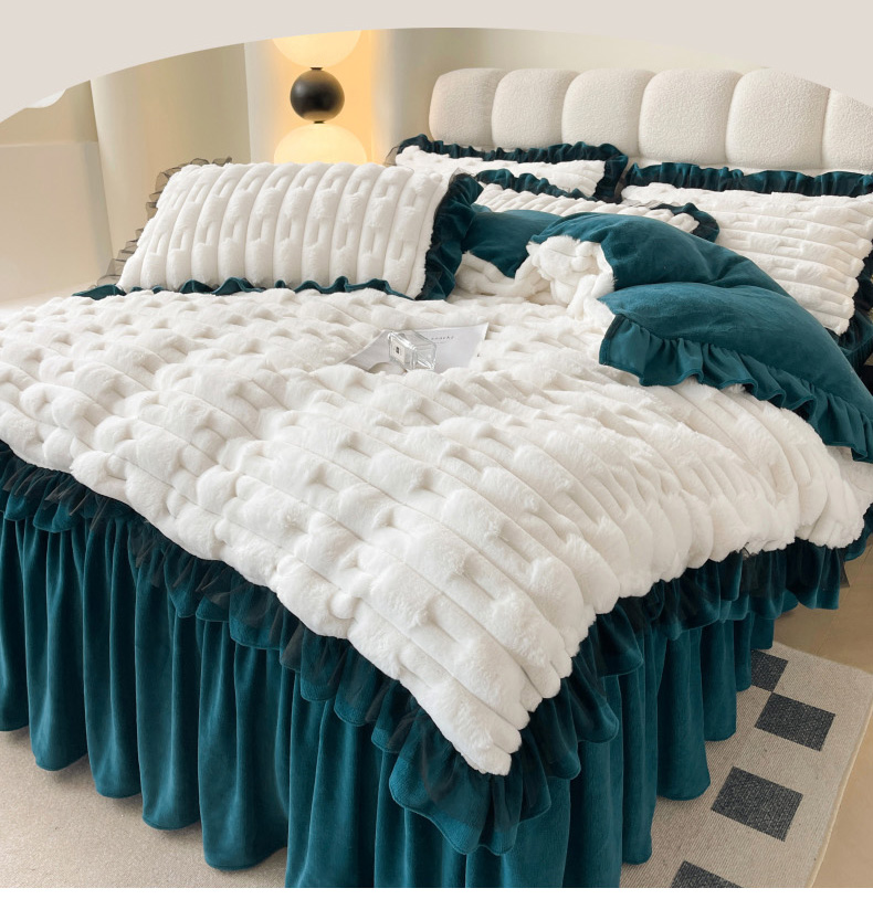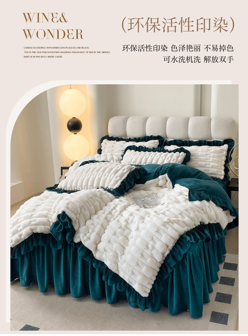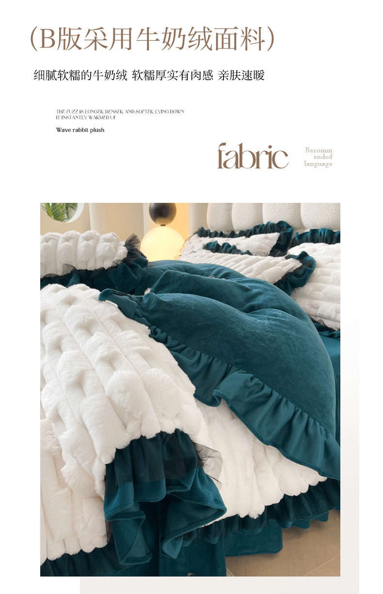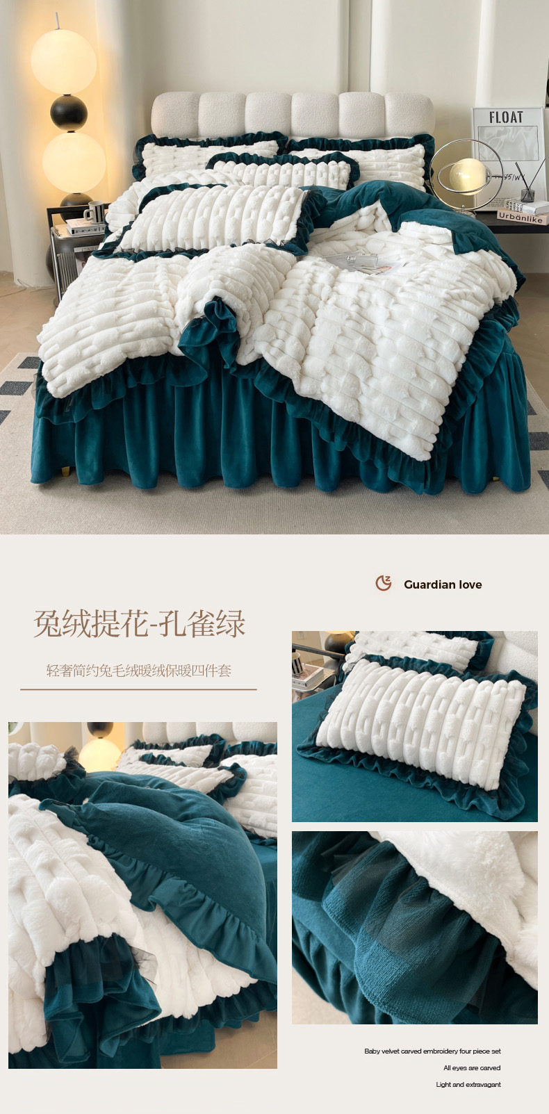 当前位置: 91家纺网 > 商品网购 > 床品套件 > 四件套 > 牛奶绒四件套 > 睡美人 2025韩版兔绒提花牛奶绒床裙床单床笠款四件套 兔绒提花-孔雀绿