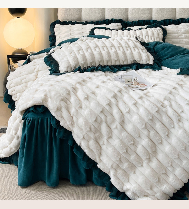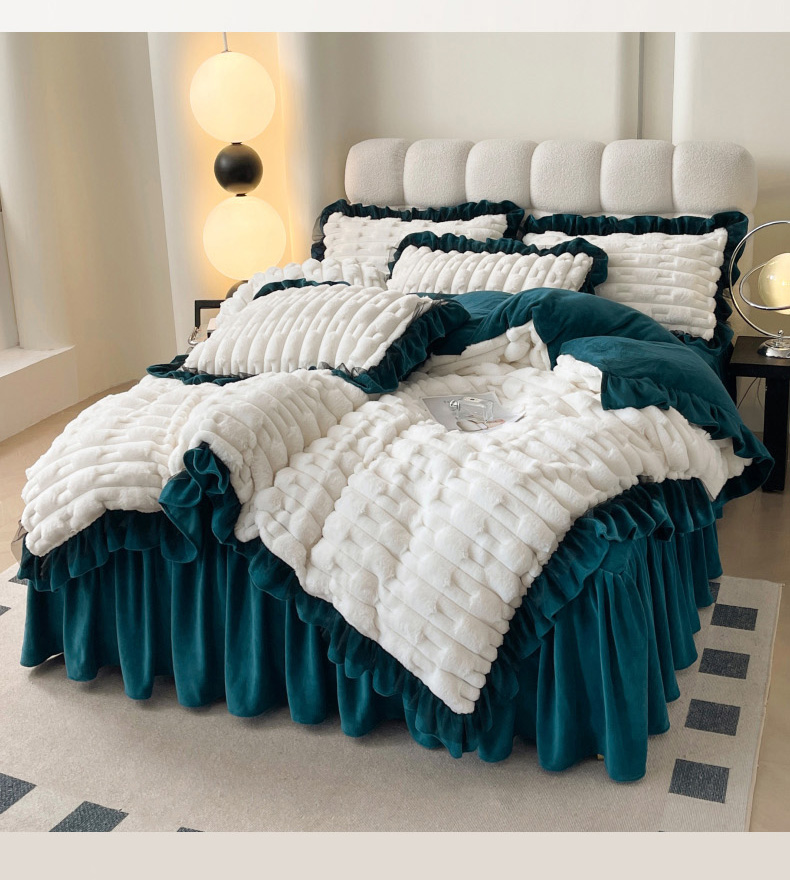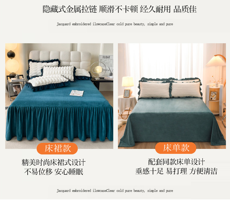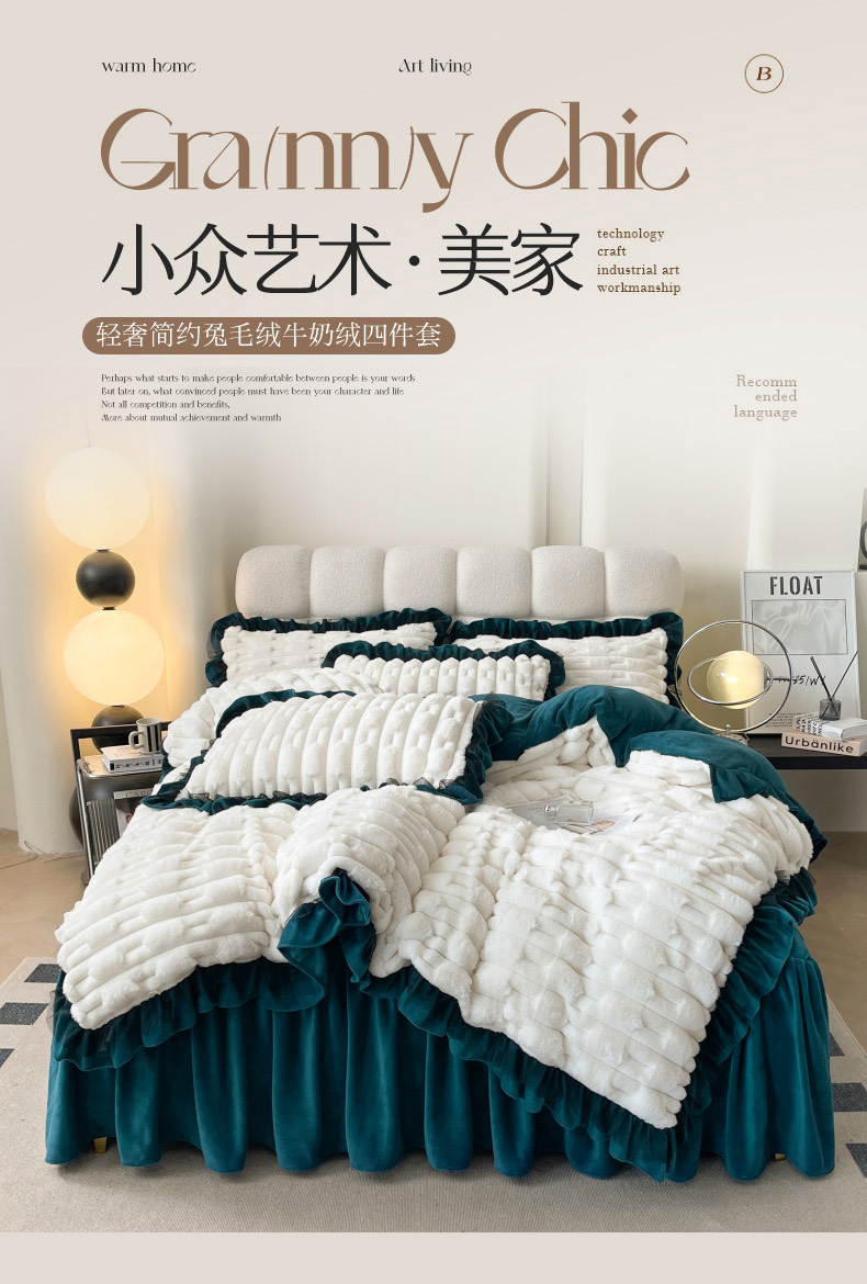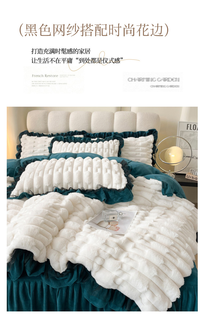 当前位置: 91家纺网 > 商品网购 > 床品套件 > 四件套 > 牛奶绒四件套 > 睡美人 2025韩版兔绒提花牛奶绒床裙床单床笠款四件套 兔绒提花-孔雀绿