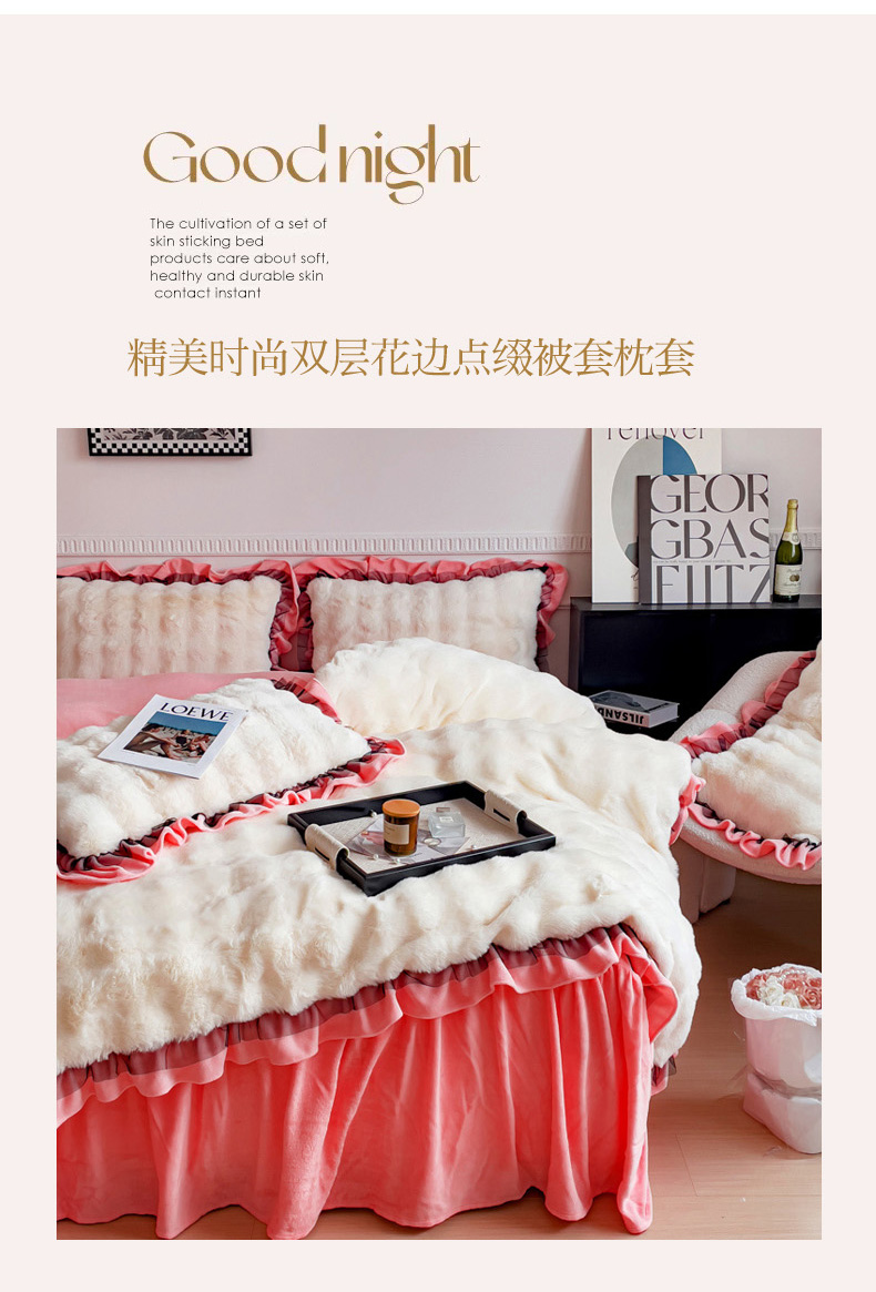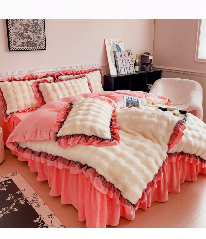 当前位置: 91家纺网 > 商品网购 > 床品套件 > 四件套 > 牛奶绒四件套 > 睡美人 2025韩版兔兔绒牛奶绒床裙床单床笠款公主蕾丝四件套 兔兔绒-石榴红
