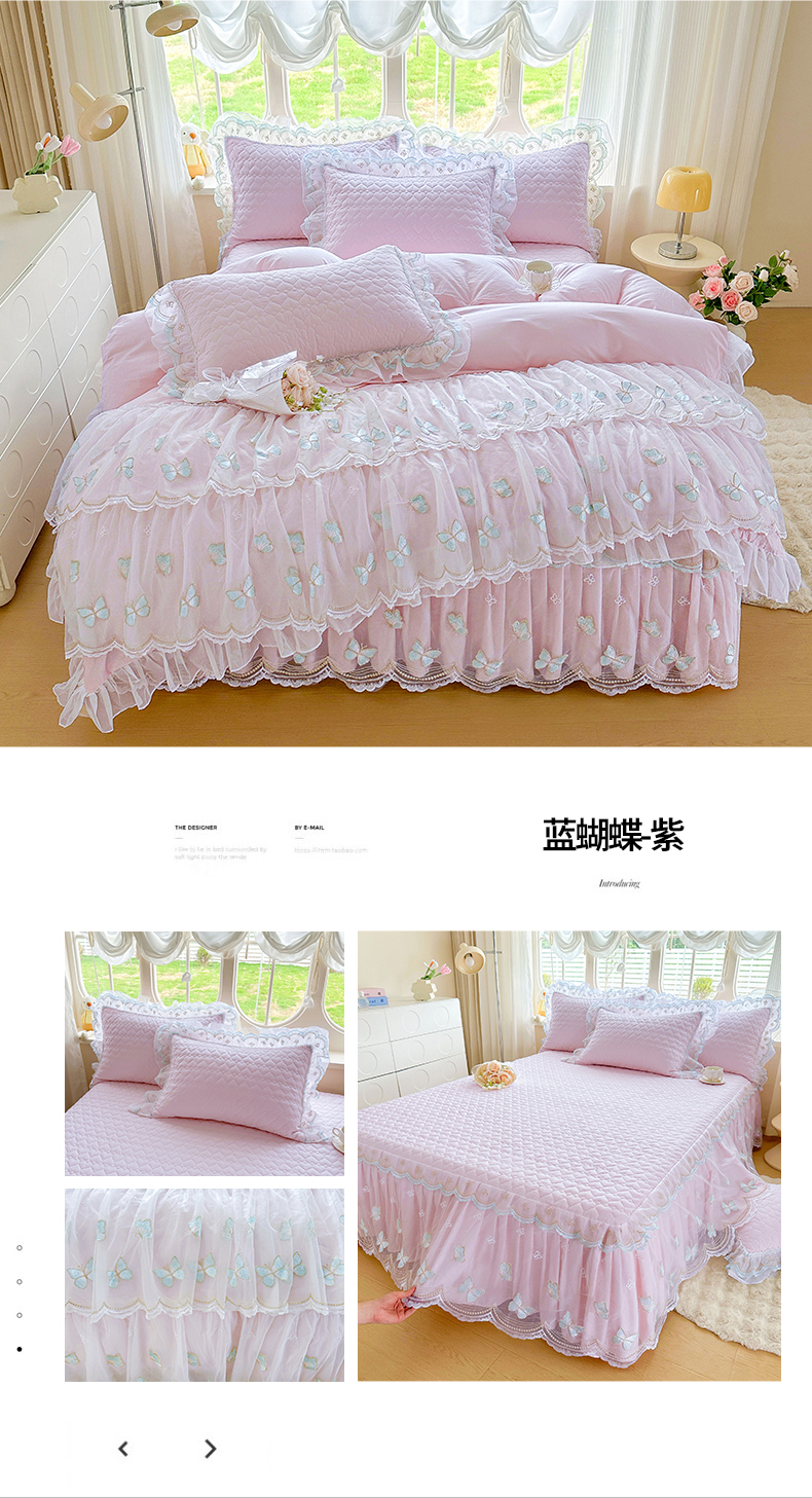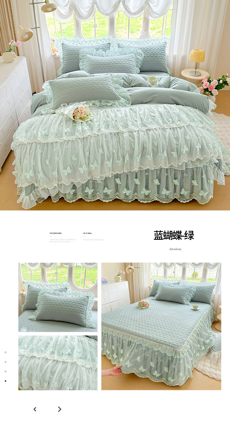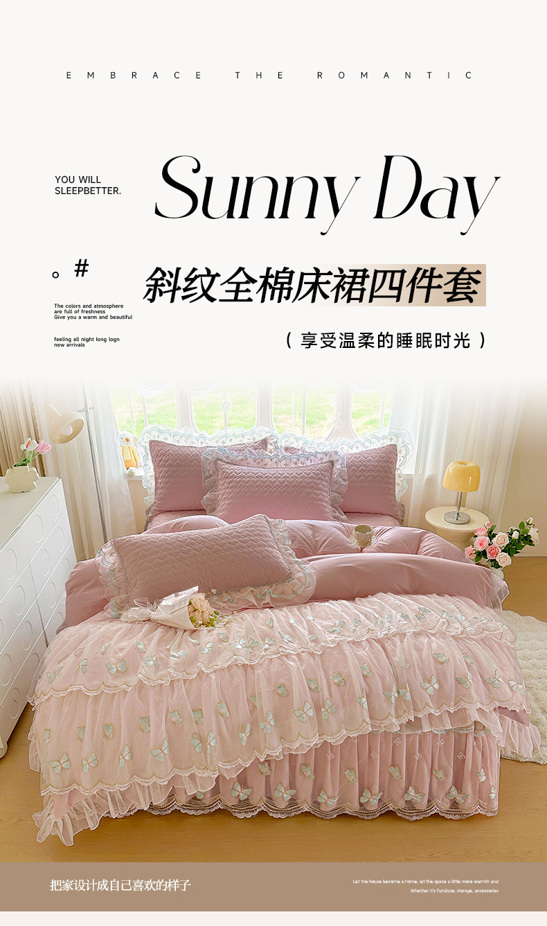 当前位置: 91家纺网 > 商品网购 > 床品套件 > 四件套 > 其它四件套 > 罗艺轩 2025新款全棉纯棉斜纹工艺床裙四件套 蓝蝴蝶-豆沙