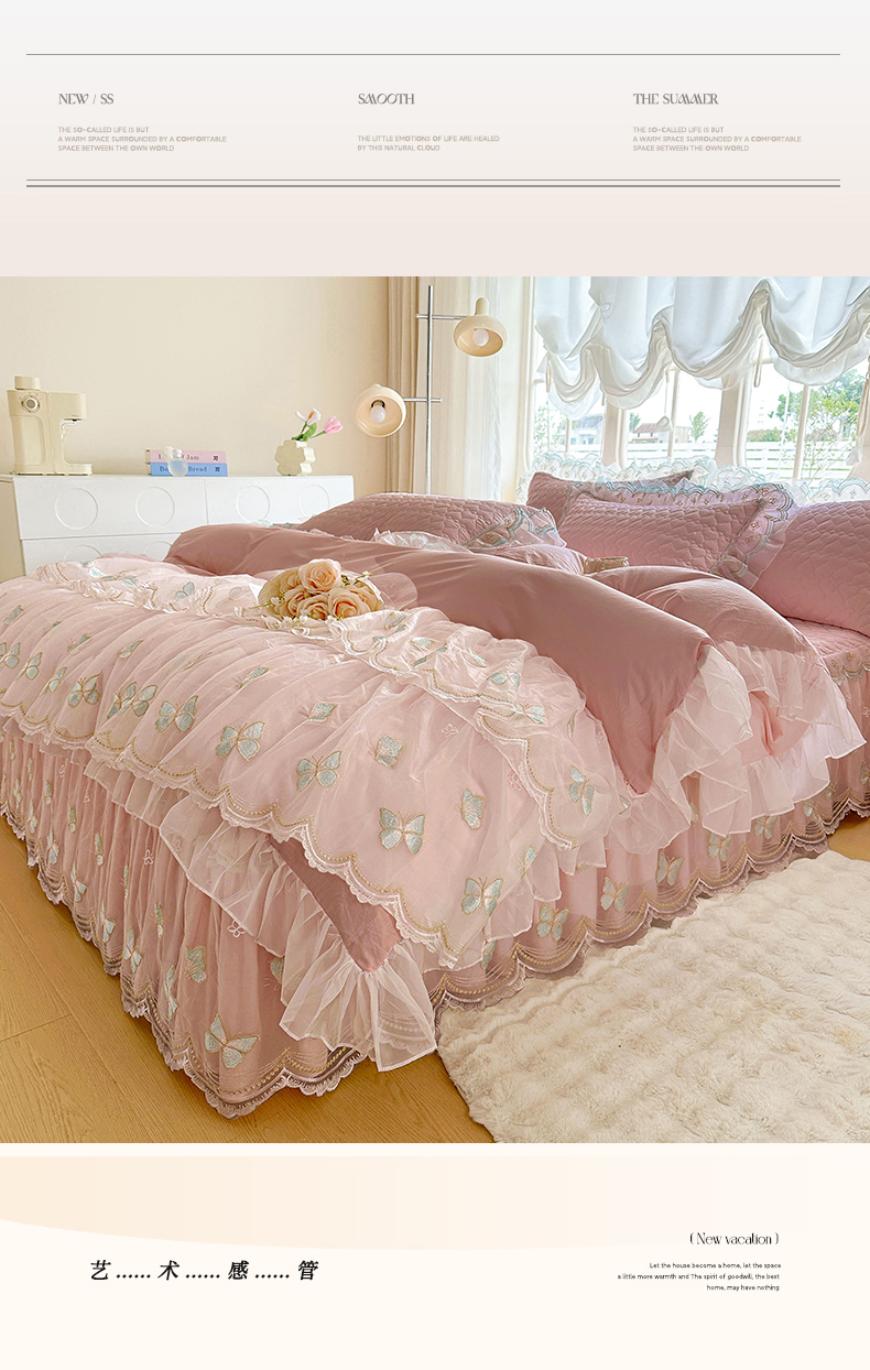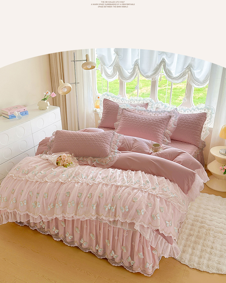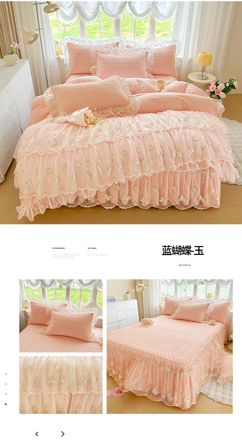 当前位置: 91家纺网 > 商品网购 > 床品套件 > 四件套 > 其它四件套 > 罗艺轩 2025新款全棉纯棉斜纹工艺床裙四件套 蓝蝴蝶-豆沙