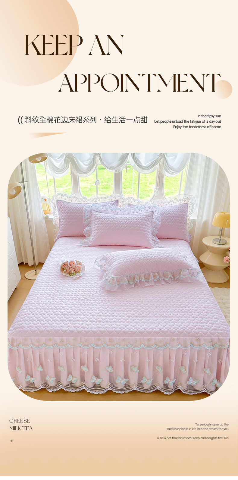 (总)罗艺轩 2025新款牛奶绒浪漫花边床裙款四件套-暖洋洋(报活动和优惠券后控价99起/控价107起),暖洋洋-白,暖洋洋-豆沙,暖洋洋-灰,暖洋洋-酒红,暖洋洋-绿,暖洋洋-奶咖