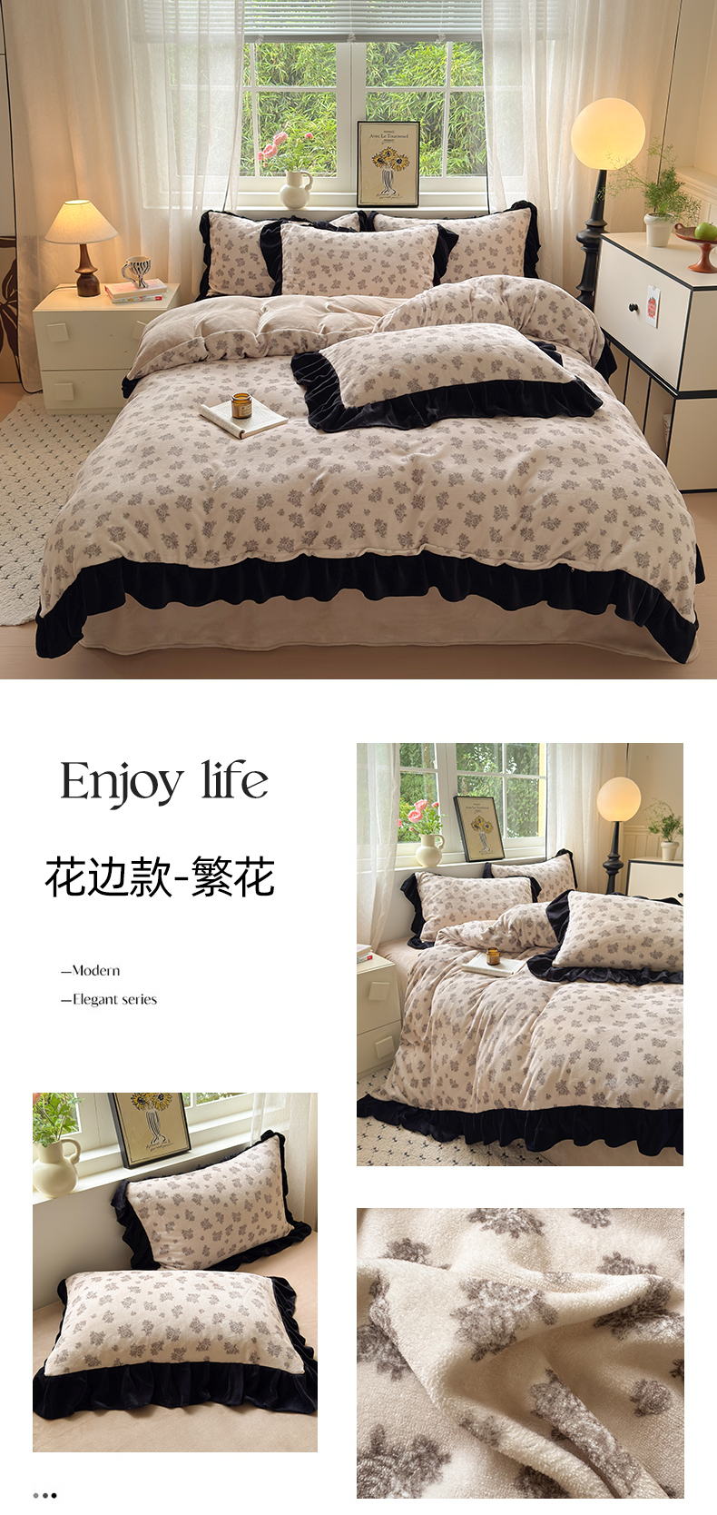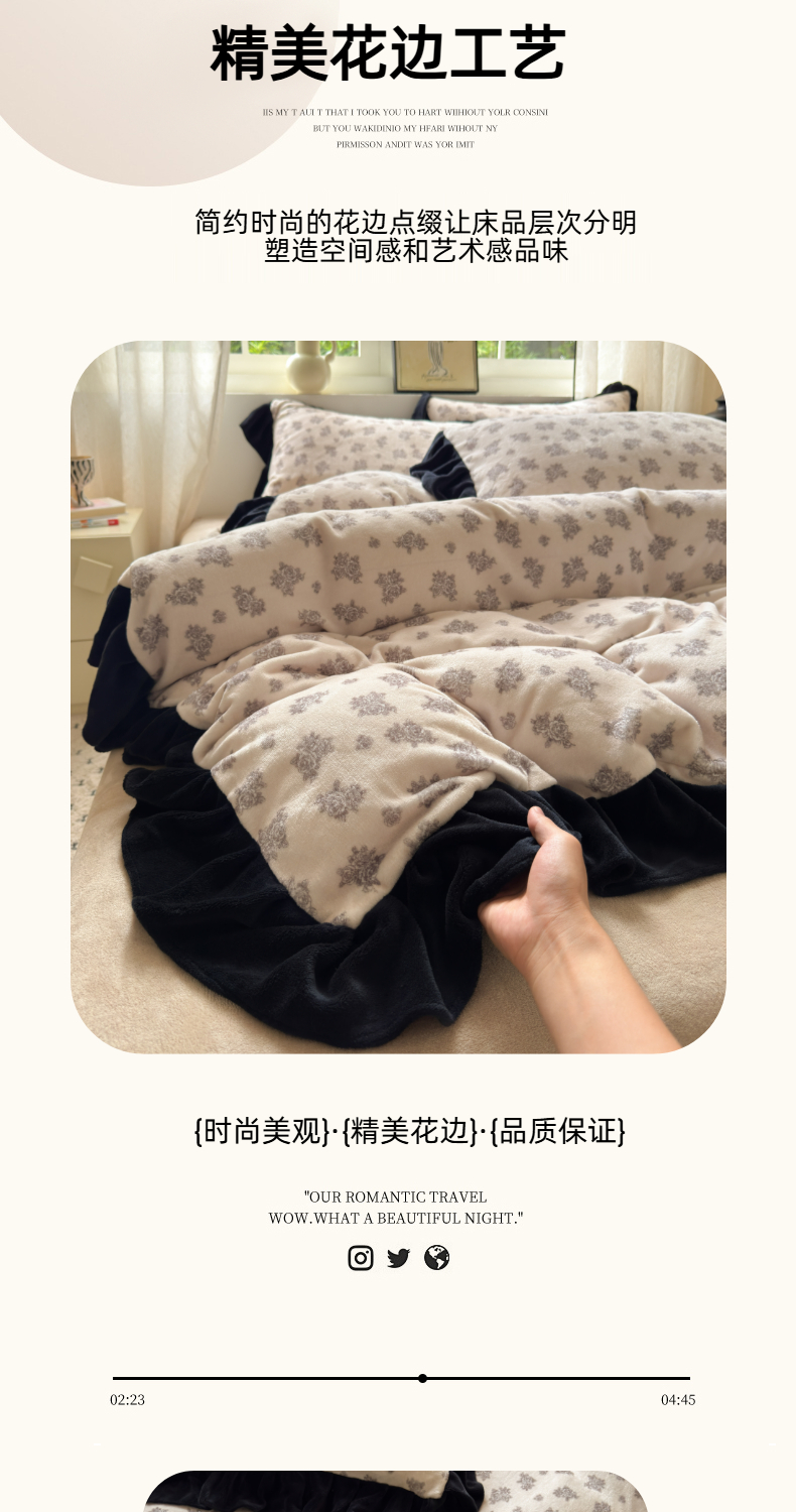 当前位置: 91家纺网 > 商品网购 > 床品套件 > 四件套 > 牛奶绒四件套 > 2025新款赫本风牛奶绒-花边款四件套 花边款-繁花