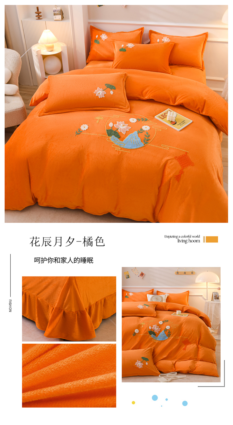 商品名称:提花大世界 2025新款宝宝绒绣花款牛奶绒婴儿绒保暖四件套 兔兔花园-橘色