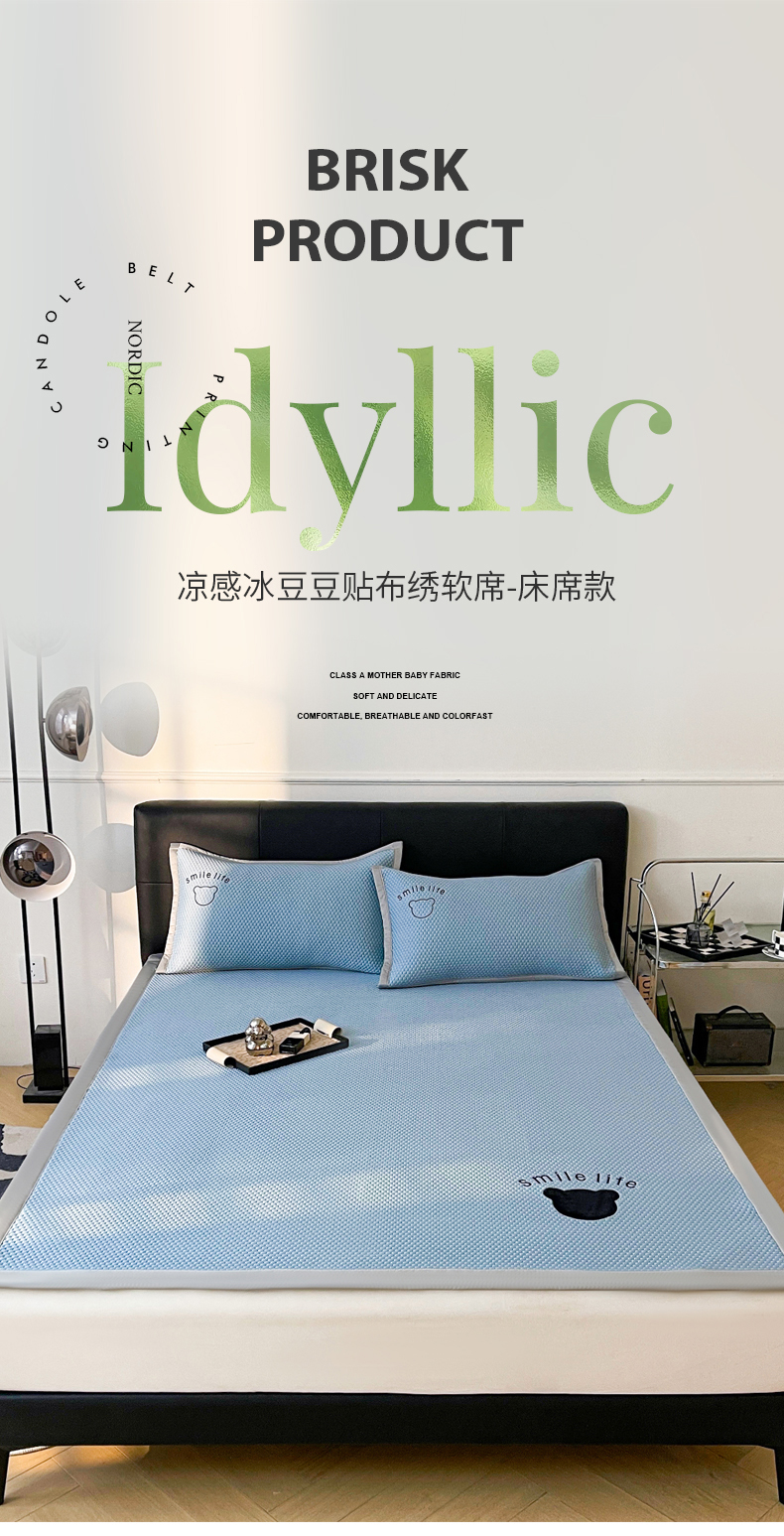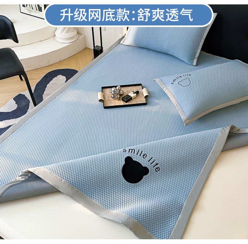 当前位置: 91家纺网 > 商品网购 > 床上用品 > 凉席 > 其他凉席 > 小叮当家纺仓储工厂店 2025新款冰豆豆贴布绣八宝熊系列绑带床席款(场景一) 绑带款-八宝熊-蓝