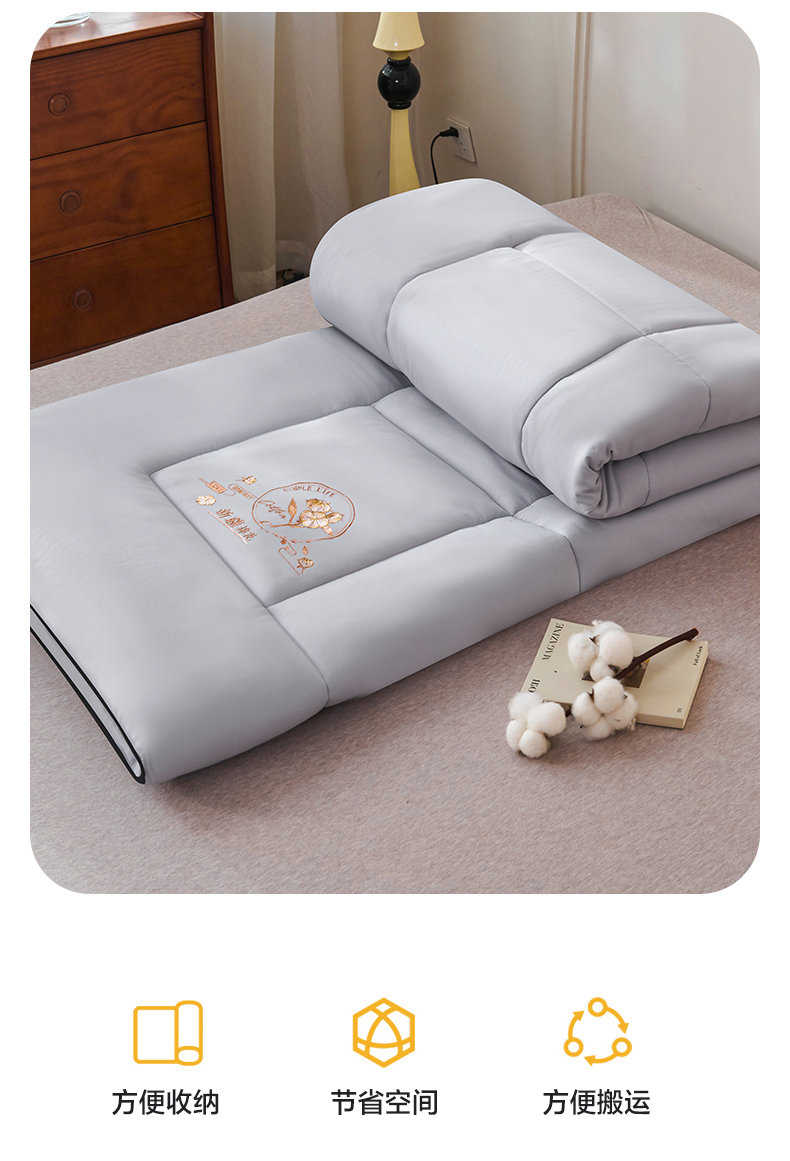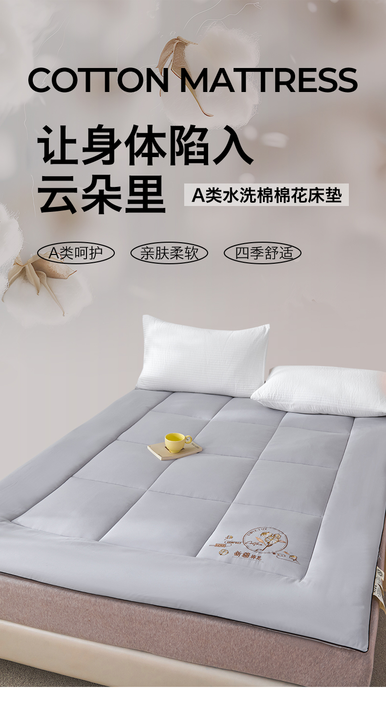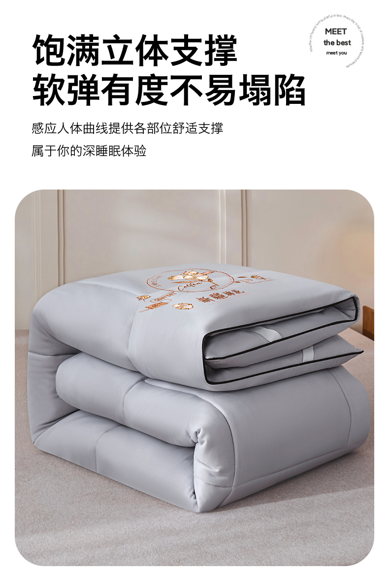 当前位置: 91家纺网 > 商品网购 > 床垫/床褥 > 普通床垫 > 满圆红家纺 2025新款刺绣款A类51%新疆棉花床褥垫软垫棉絮垫子床褥垫子(提供买家秀) 纯色-浅灰