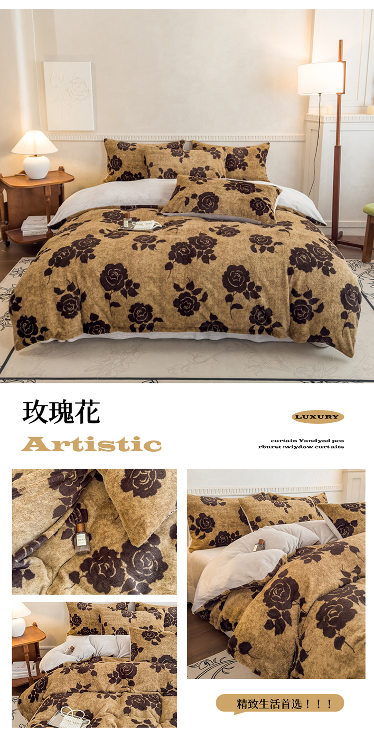 商品名称:橘子家 2025新款轻奢兔绒高克重四件套 玫瑰花