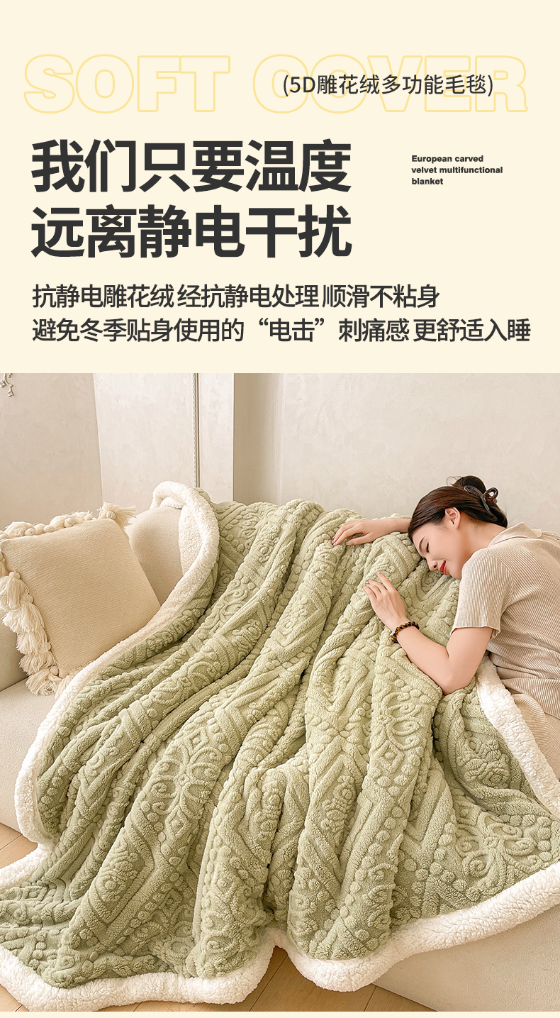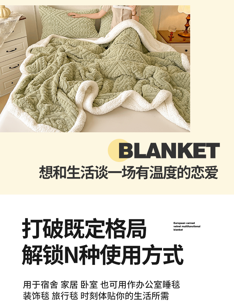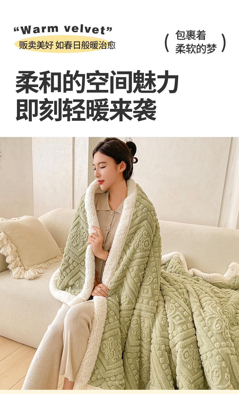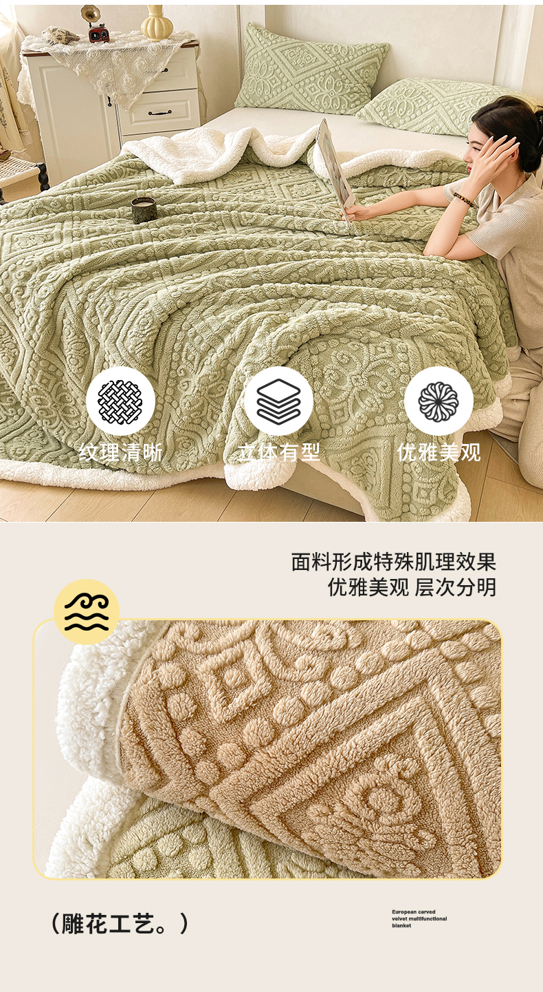 商品名称:世纪绒品 2025新款5D雕花毛毯 抹茶绿