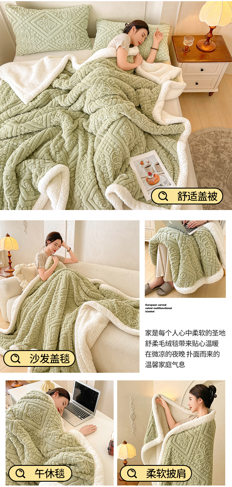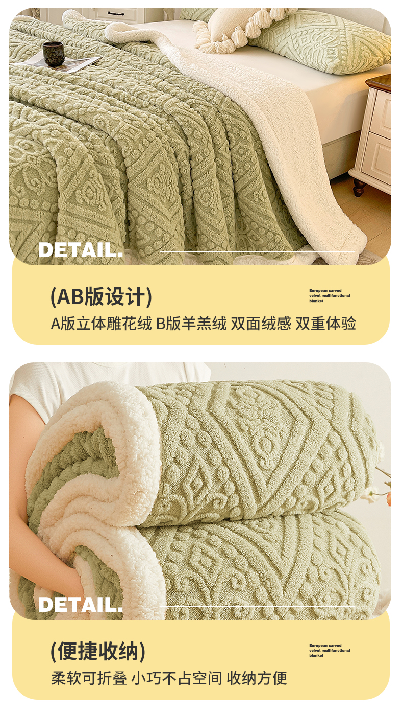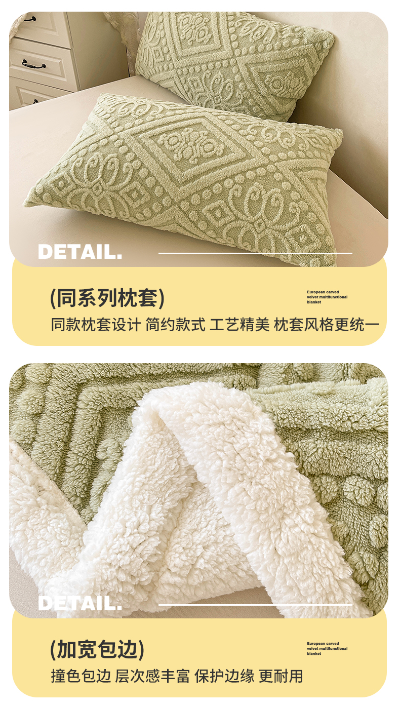商品名称:世纪绒品 2025新款5D雕花毛毯 抹茶绿