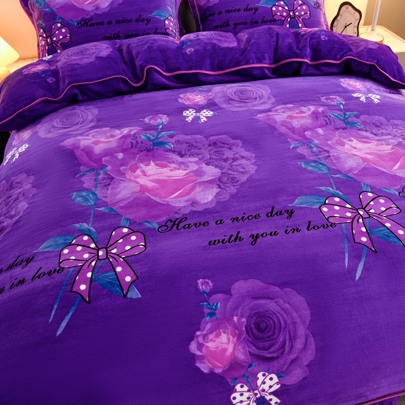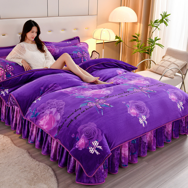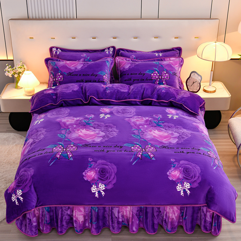 当前位置: 91家纺网 > 商品网购 > 床品套件 > 四件套 > 牛奶绒四件套 > 2025新款230克8.5斤加厚高克重牛奶绒金貂绒法莱绒四件套冬季加绒法兰绒床裙款 紫色玫瑰