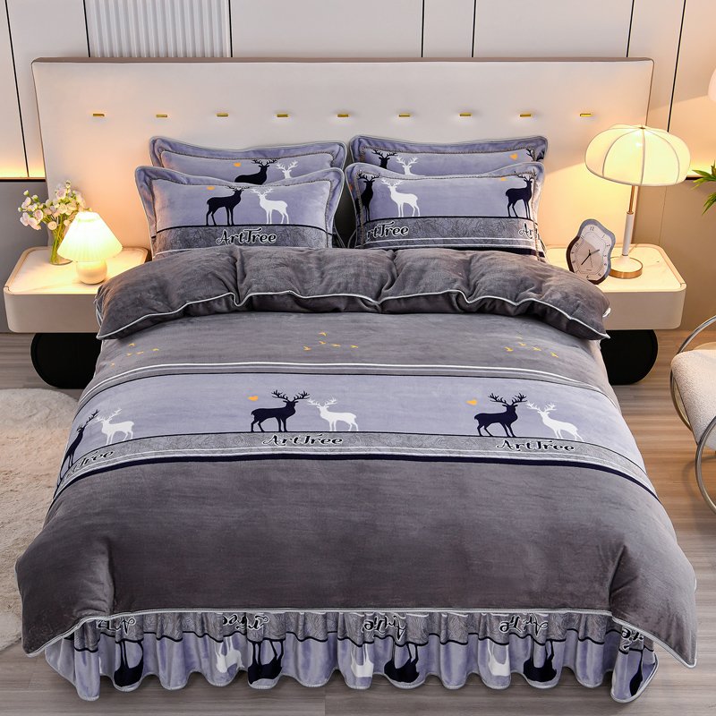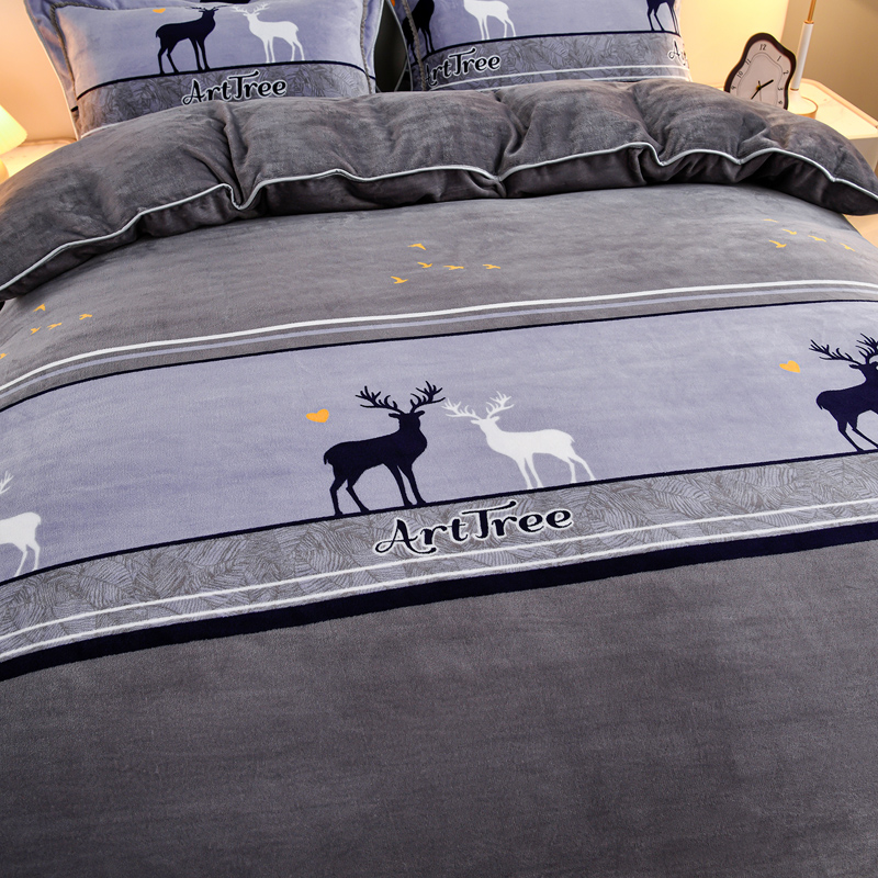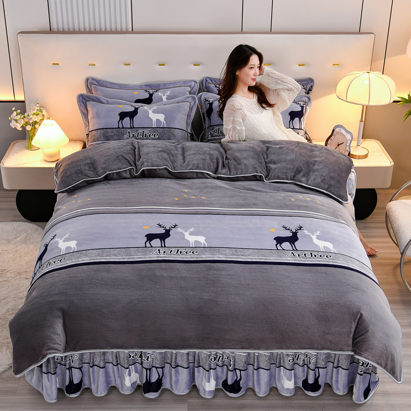 当前位置: 91家纺网 > 商品网购 > 床品套件 > 四件套 > 牛奶绒四件套 > 2025新款230克8.5斤加厚高克重牛奶绒金貂绒法莱绒四件套冬季加绒法兰绒床裙款 一鹿有你-灰