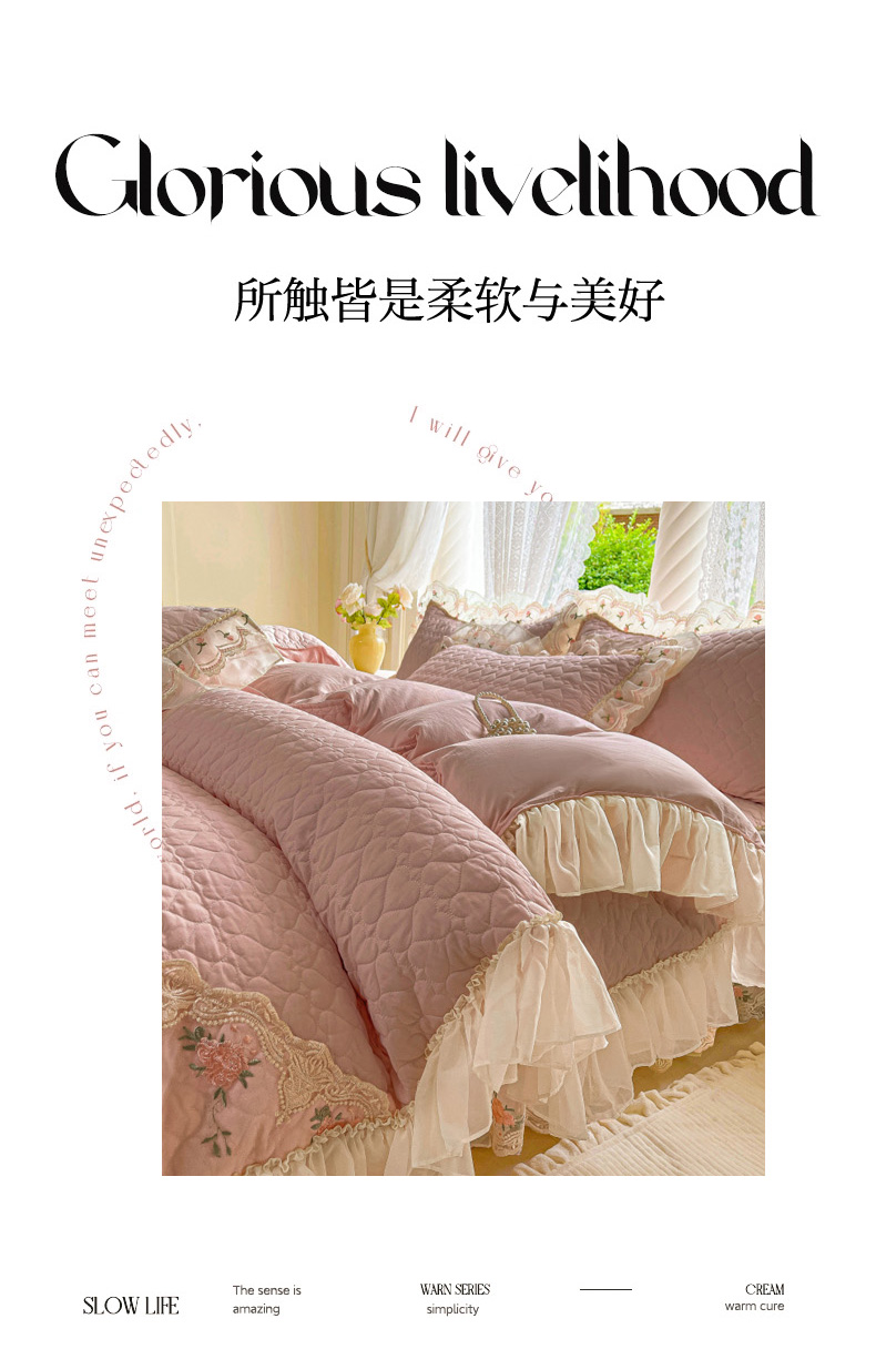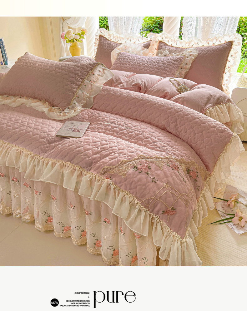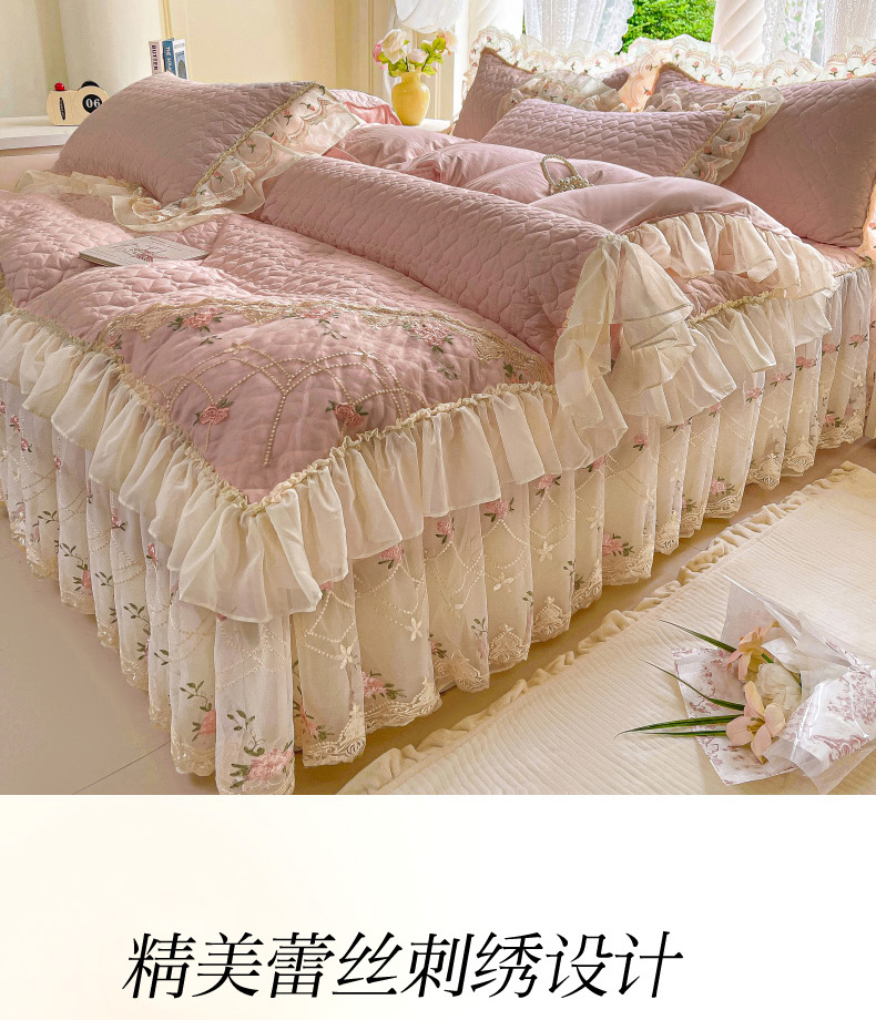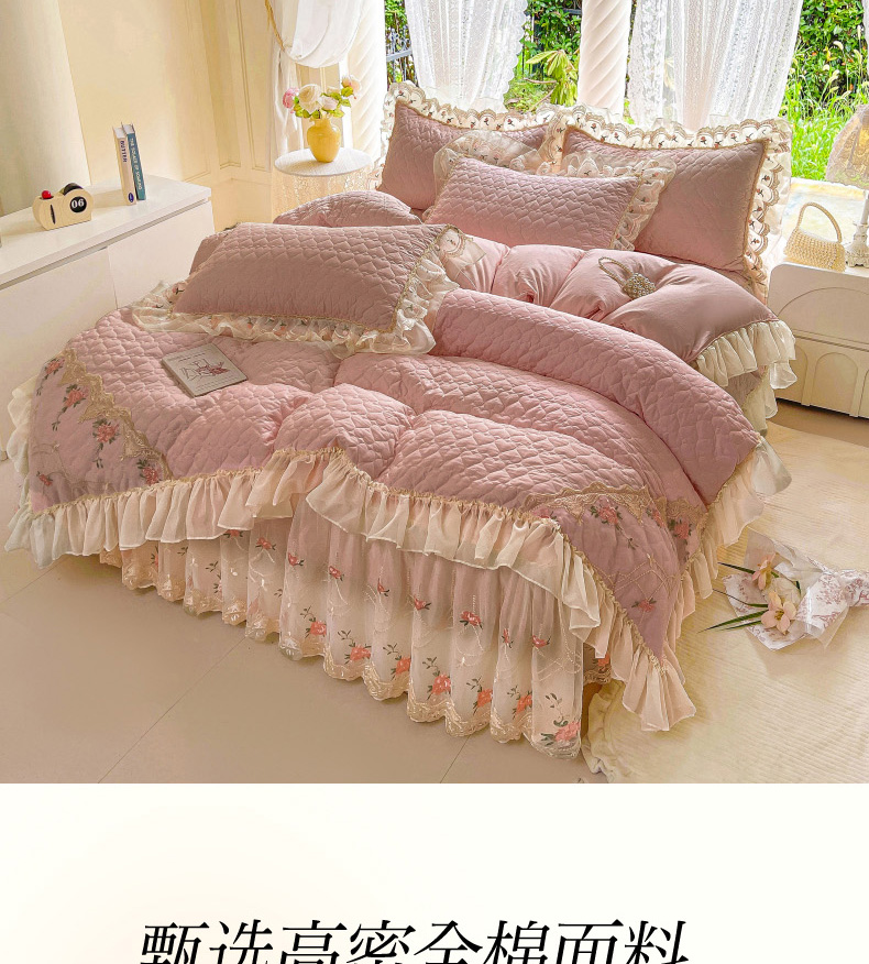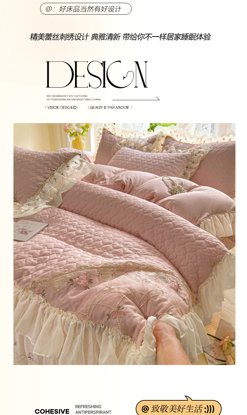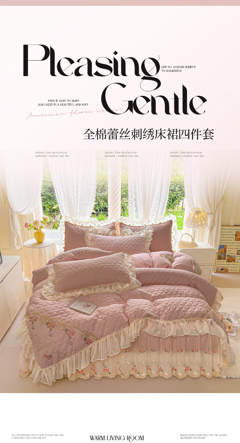 当前位置: 91家纺网 > 商品网购 > 床品套件 > 四件套 > 全棉普通四件套 > 罗艺轩 2025新款全棉蕾丝刺绣床裙四件套-小香玫瑰 小香玫瑰-豆沙