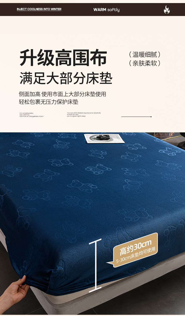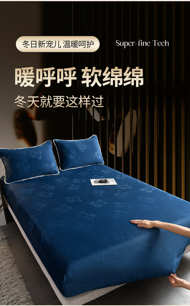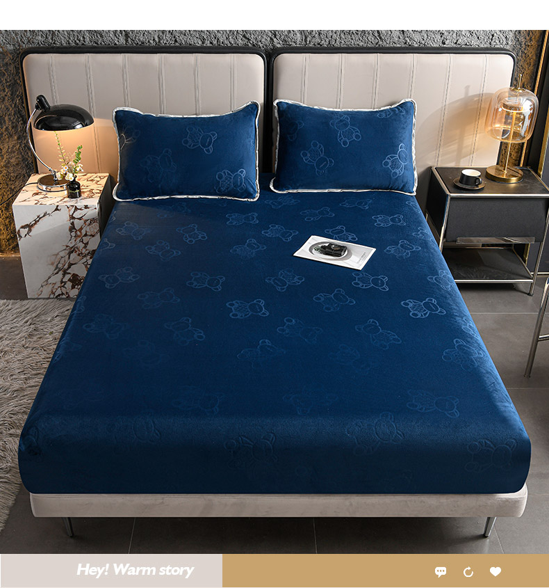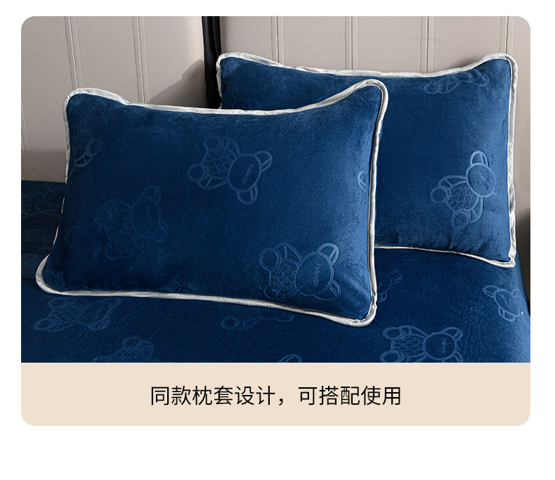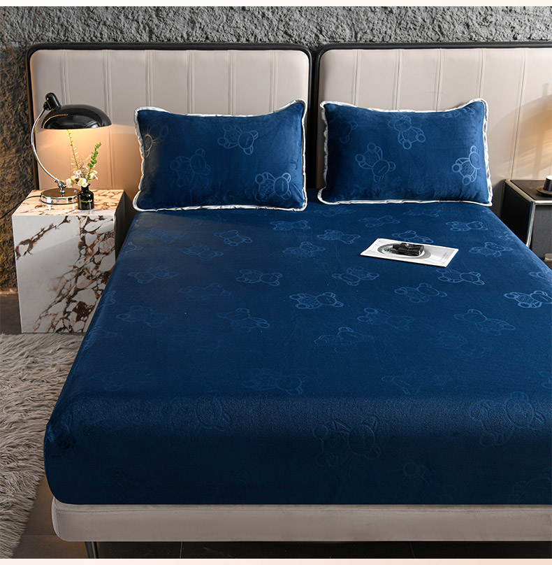 推推家纺 2025新款高克重雕花水晶绒压花床笠外贸 泰迪熊-蓝色