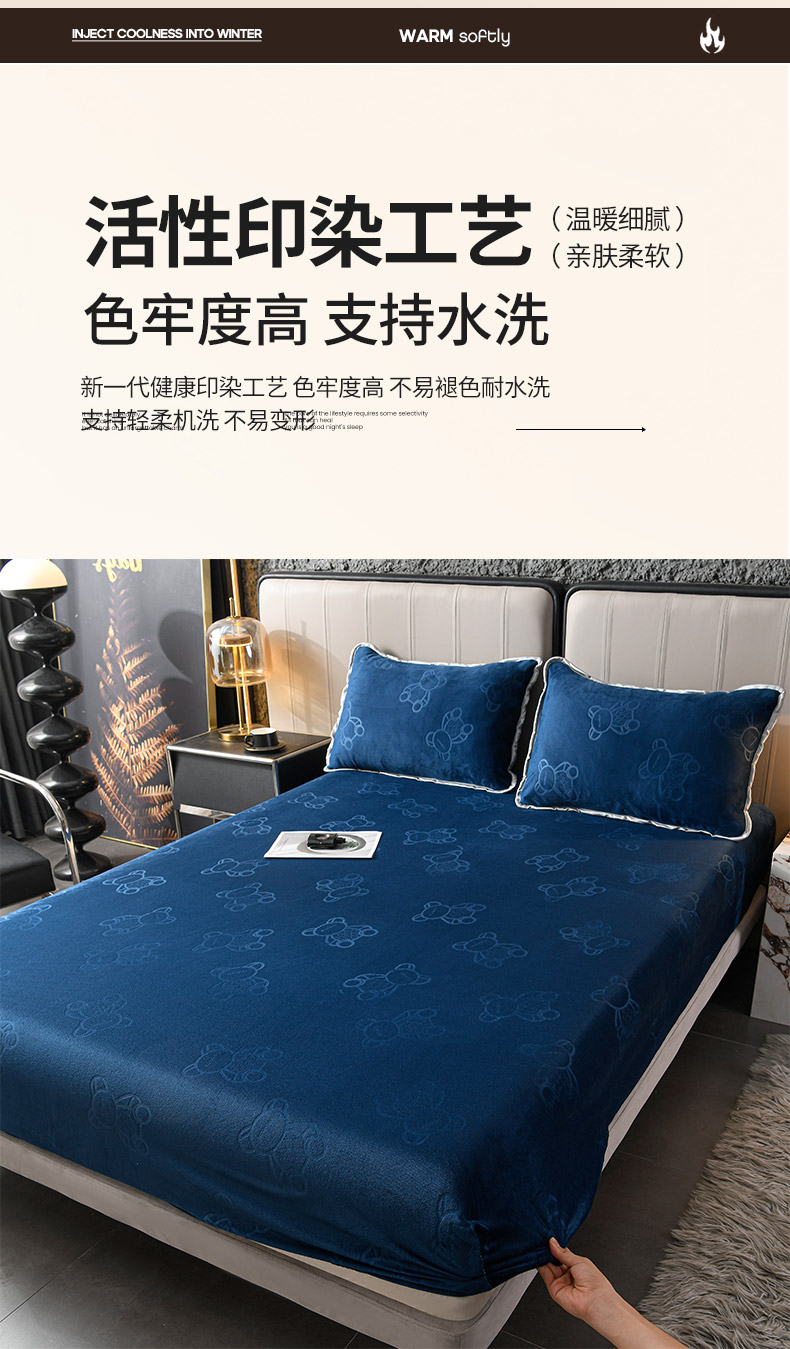 • 91家纺网 家纺一手货源 找家纺 推推家纺 2025新款高克重雕花水晶绒压花床笠外贸 泰迪熊-蓝色